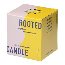A 6oz soy-blend scented candle is outfitted in a matte glazed ceramic vessel and includes an organic seed packet to grow plant once the candle has been burned down. Candle and seed packet are packaged inside a beautifully designed box for easy gifting. Plastic-free packaging. 42 hour burn time. Gift box dimensions: 3.5’’L x 3.5’’W x 3.75’’H