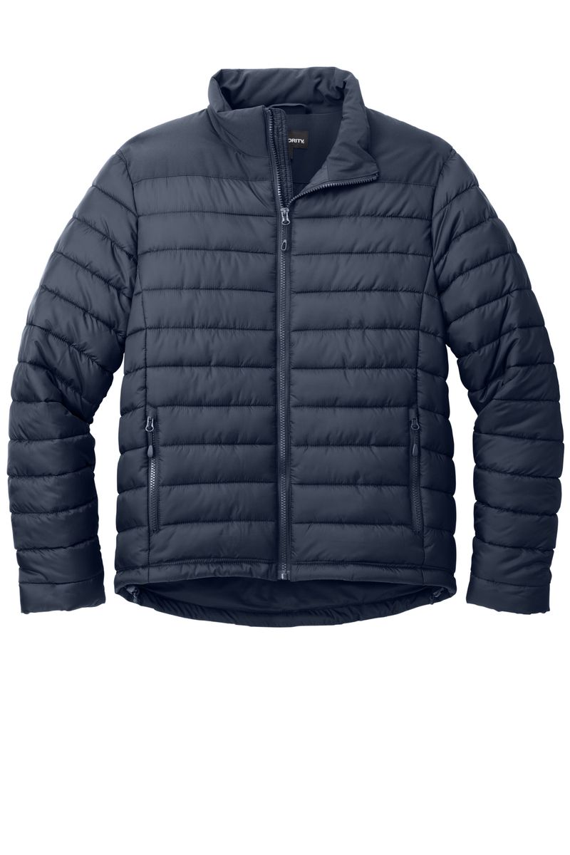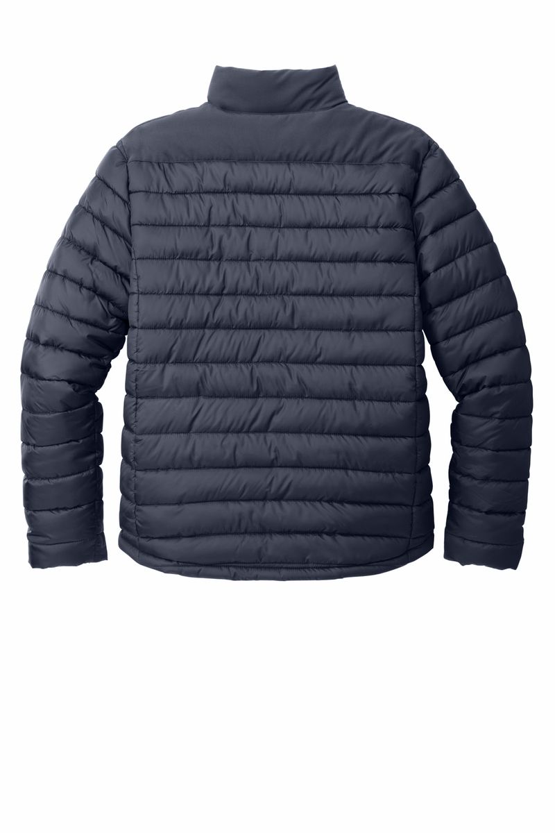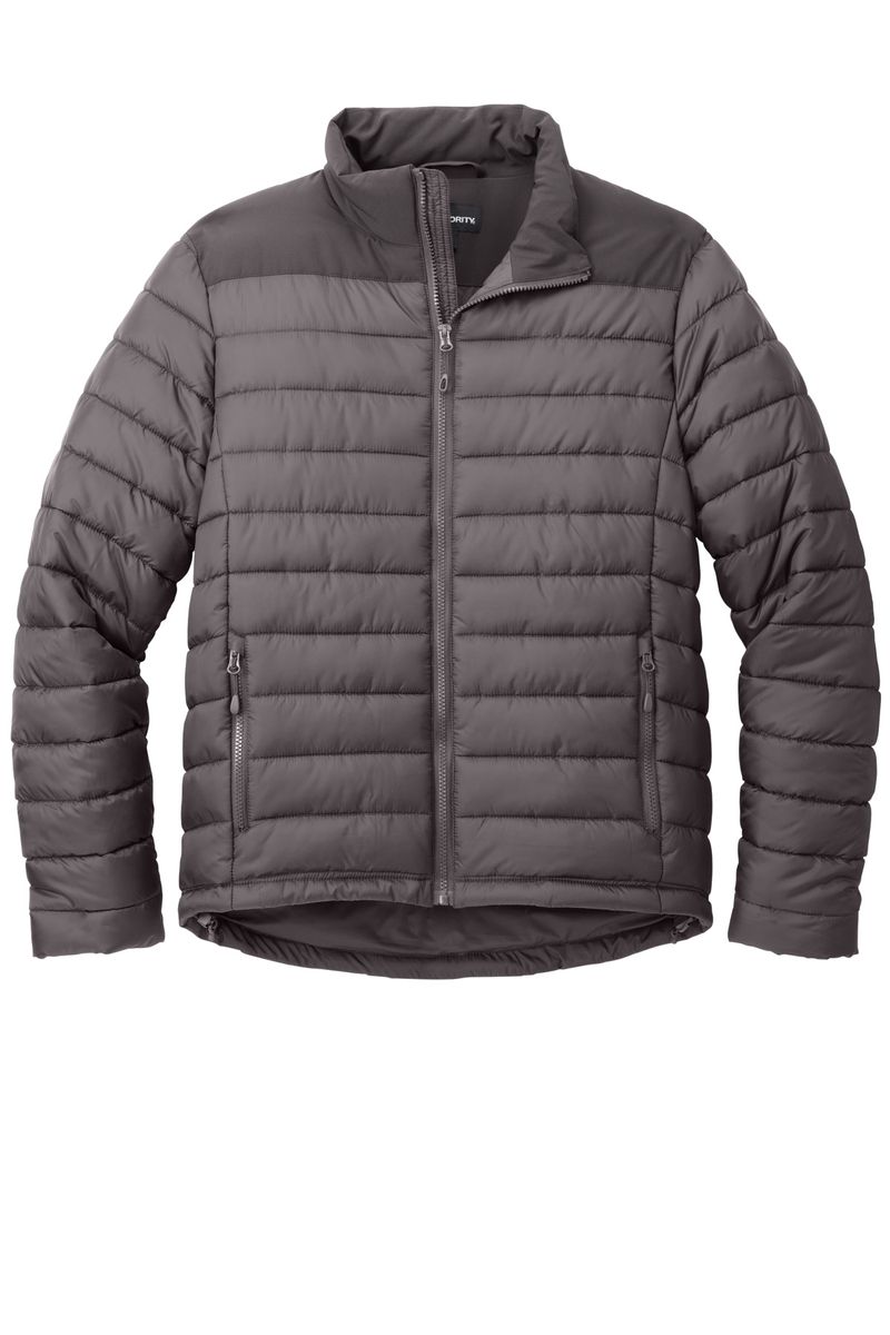 With horizontal baffles, a slight sheen and insulation that simulates down feathers, this is the newest puffy on the horizon. A water-resistant finish helps keep light rain out.
