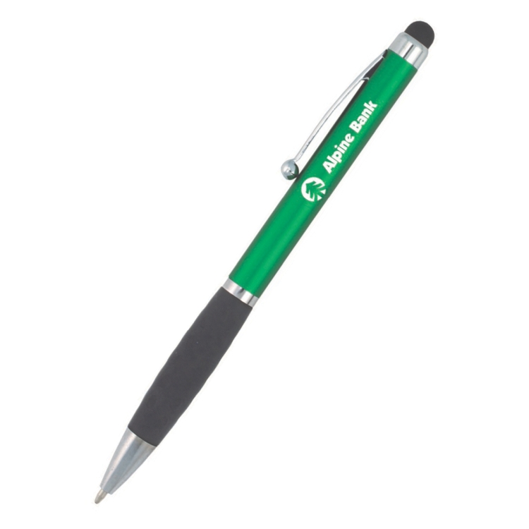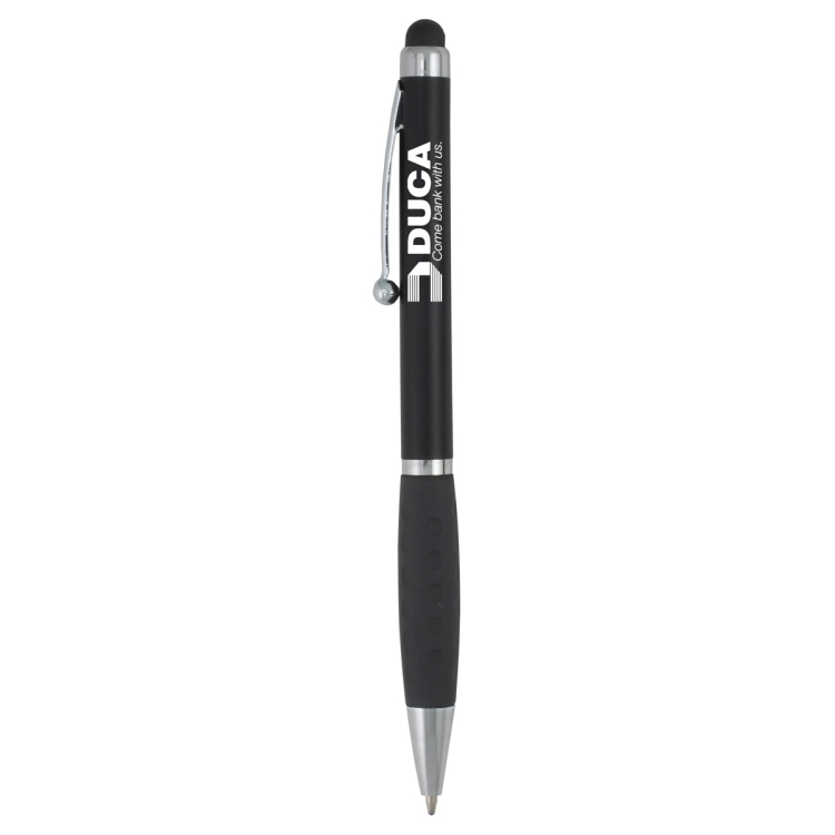 Stylish twist action ballpoint pen with soft rubber stylus tip for use with all your touch screen mobile devices such iPad ®, iPhone ®, Galaxy ®, Nexus ®, Surface ® etc.