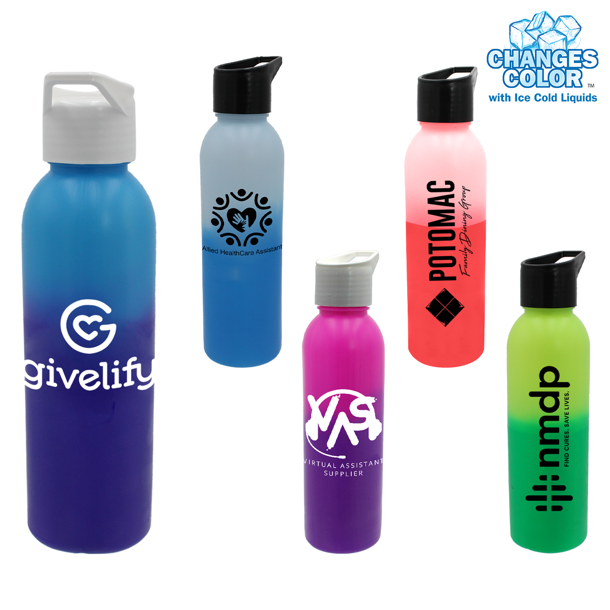 Pricing Includes:A one-color silk-screened imprint on one or two sides. Unless specified, orders will be set-up as a one-sided imprint. Caps are shipped unassembled. Please be sure to specify bottle color and lid color when ordering.