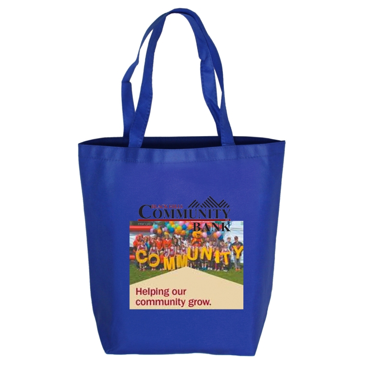 This economical, yet sturdy 80GSM Non-woven Polypropylene Grocery and Shopping Tote bag is recyclable and reusable. Extra comfortable cross-stitched 20” handle straps for added strength Also available with a Full Color Imprint!