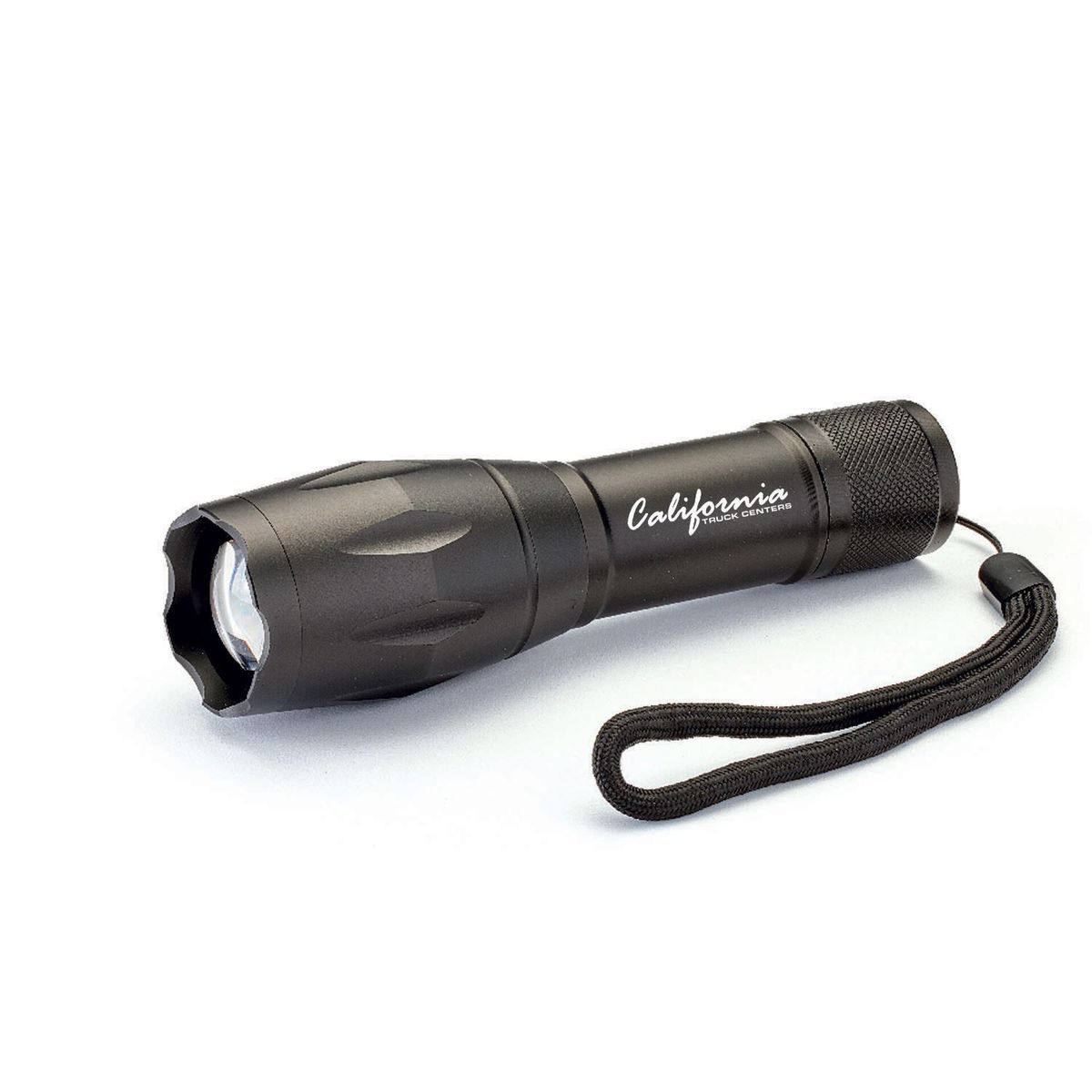 At 5 1/4” long, this essential 300 lumen LED flashlight, is the perfect light for your tool kit, glove compartment, or purse. Featuring flood-to-spotlight zoom and 5 light modes: high, mid, low, fast strobe, slow strobe. Lanyard and 3 “AAA” batteries included. Laser engraved. Boxed.