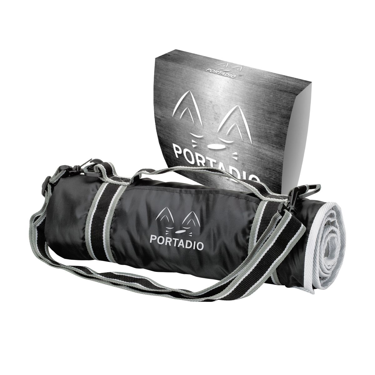 Take this roll up blanket anywhere. It features soft fleece with polyester backing and a convenient carry handle with adjustable shoulder strap. The 48" x 57" blanket rolls up to about 5 1/2" x 15". Tested Water Repellency Rating: 95/100.