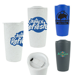 20 oz. Double wall insulated tumbler made with eco-friendly wheat straw fiber. Wheat straw fibers create a natural pattern, making no tumbler exactly alike. Color matched pressure lid with slider lock allow for spill free travel, but easy open spout for drinking. Not microwave or dishwasher safe. *Disclaimer: Due to the natural fabrication of wheat straw, colors and surface texture may affect clarity of the imprint from product to product.