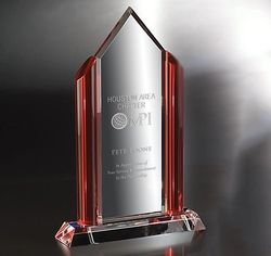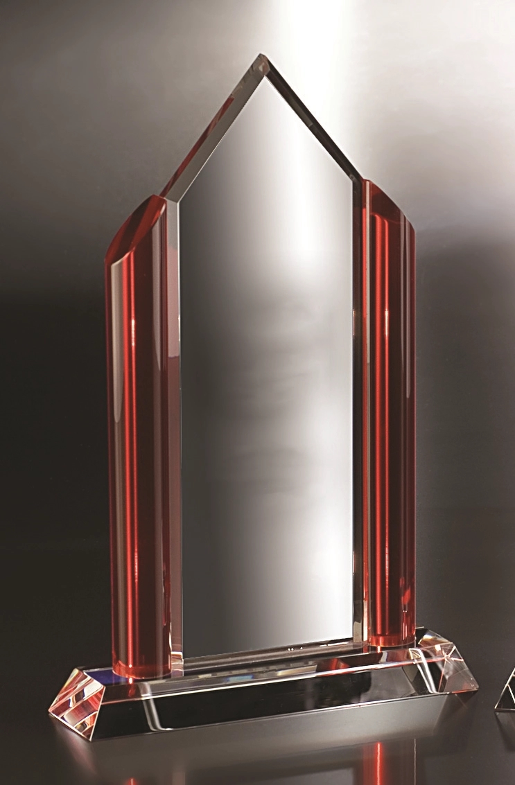 The Fashion District Award is made of optical crystal with parallel red accents. Features attached crystal base, and packaged in an attractive presentation box.