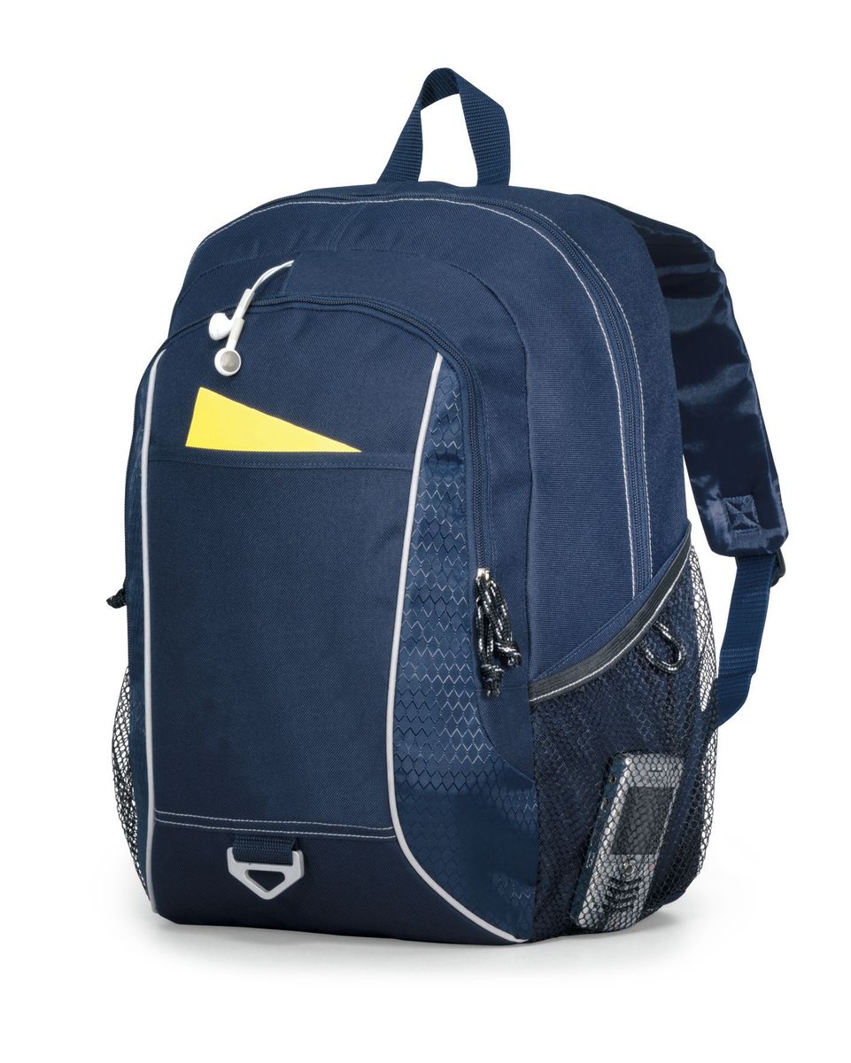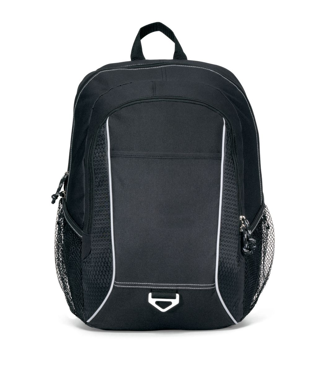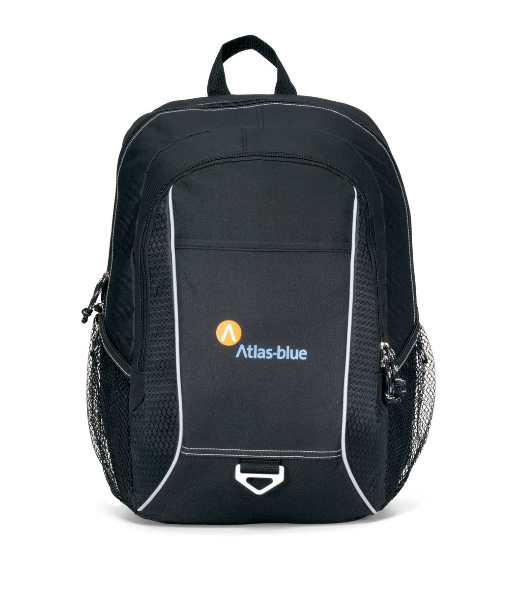 Map out your next promotional campaign with the Atlas Computer Backpack! The bag features a large main compartment with a padded computer sleeve, fitting up to 15 laptops. The bag also contains dual side mesh pockets, tri-ring for keys, zippered front pocket with multi-function organizer, earphone outlet, padded back panel and adjustable, padded shoulder straps. Add your logo, name or custom design to receive worldwide appeal!