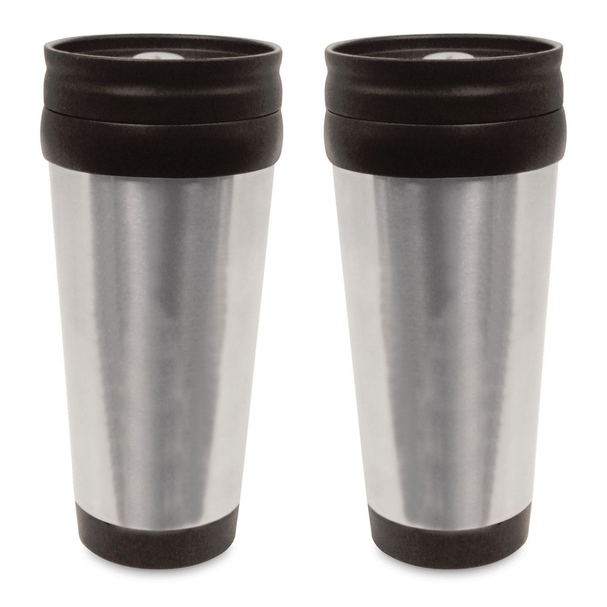 Early Morning 15 oz. Stainless Steel Travel Tumbler. BPA free. Fits most drink holders. Stainless steel plastic lined. Double wall insulation keeps drinks hot or cold and a twist on lid. Non skid black rubber bottom. Same color, second side or wrap imprint at no additional charge. Size: 7 1/2 H x 3 1/4 Upper Diameter.