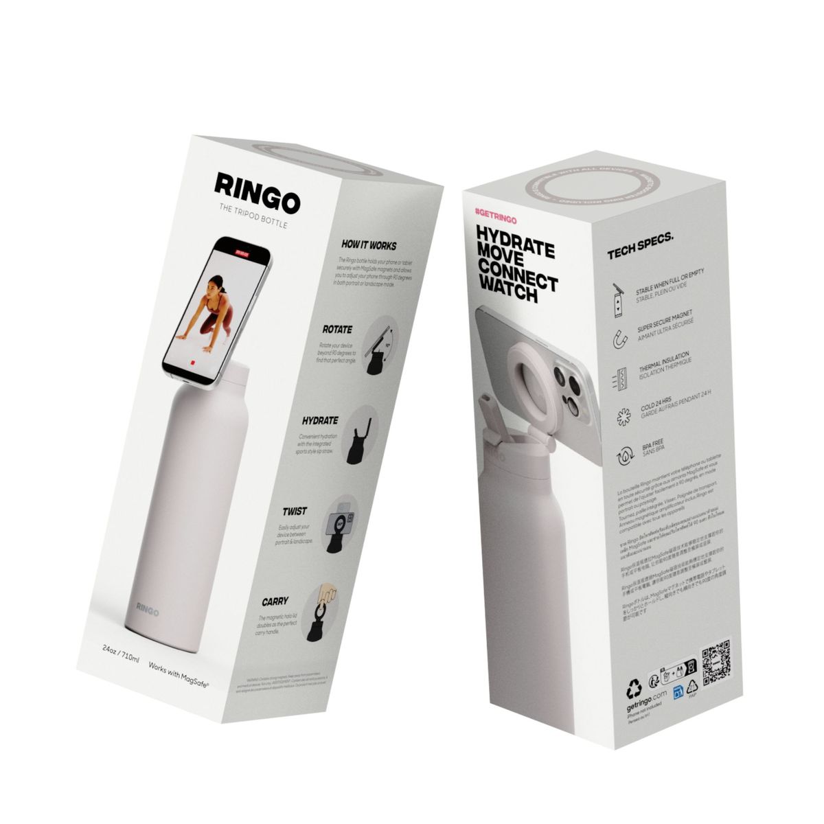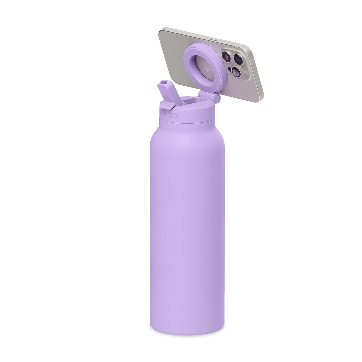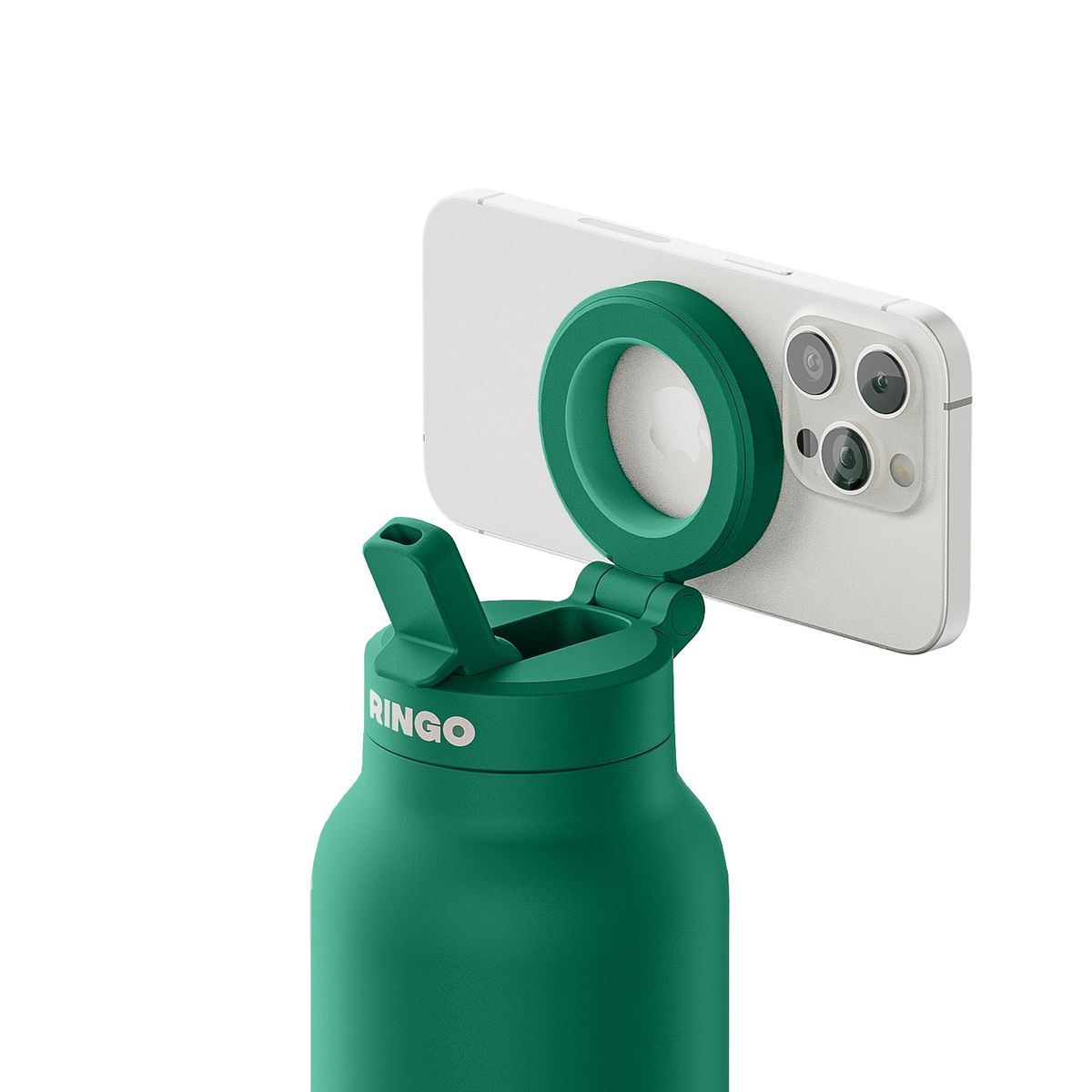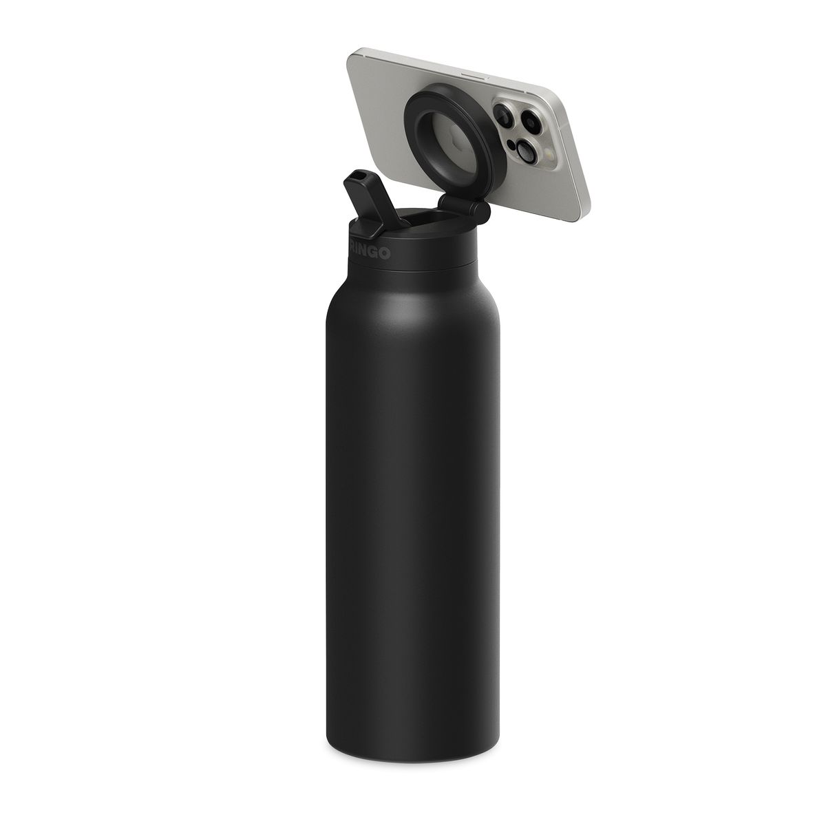 Stay refreshed and hands-free with the RINGO Pro Water Bottle. This 24 oz. bottle keeps drinks ice cold while the MagSafe-compatible magnetic ring securely mounts your phone at any angle. The flip-up straw lid is leakproof and easy to sip from, while the powder-coated finish resists scratches and scuffs. Durable, stable, and travel-ready—RINGO redefines hydration on the move.