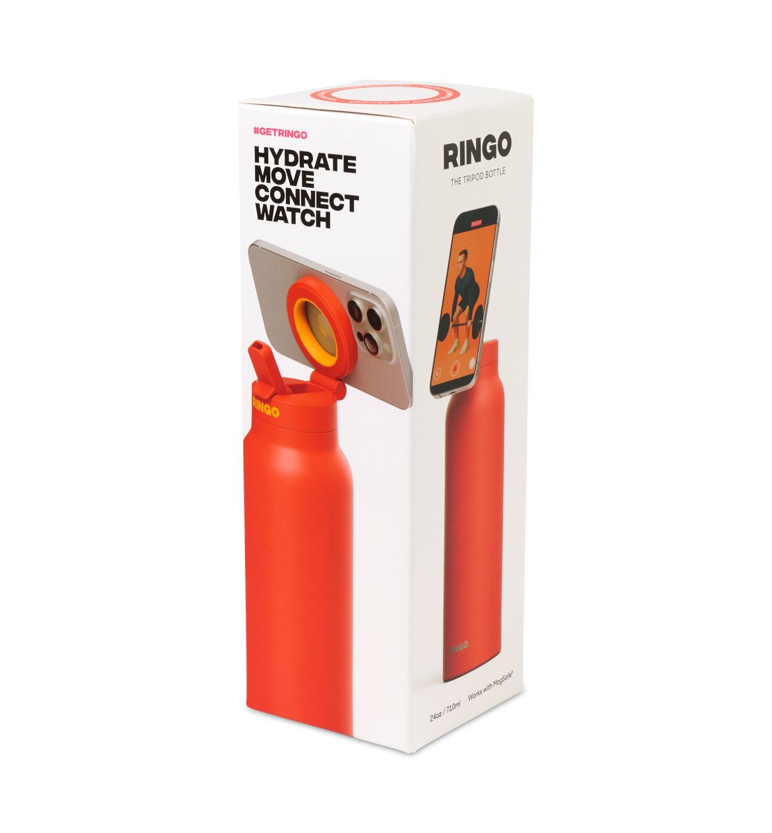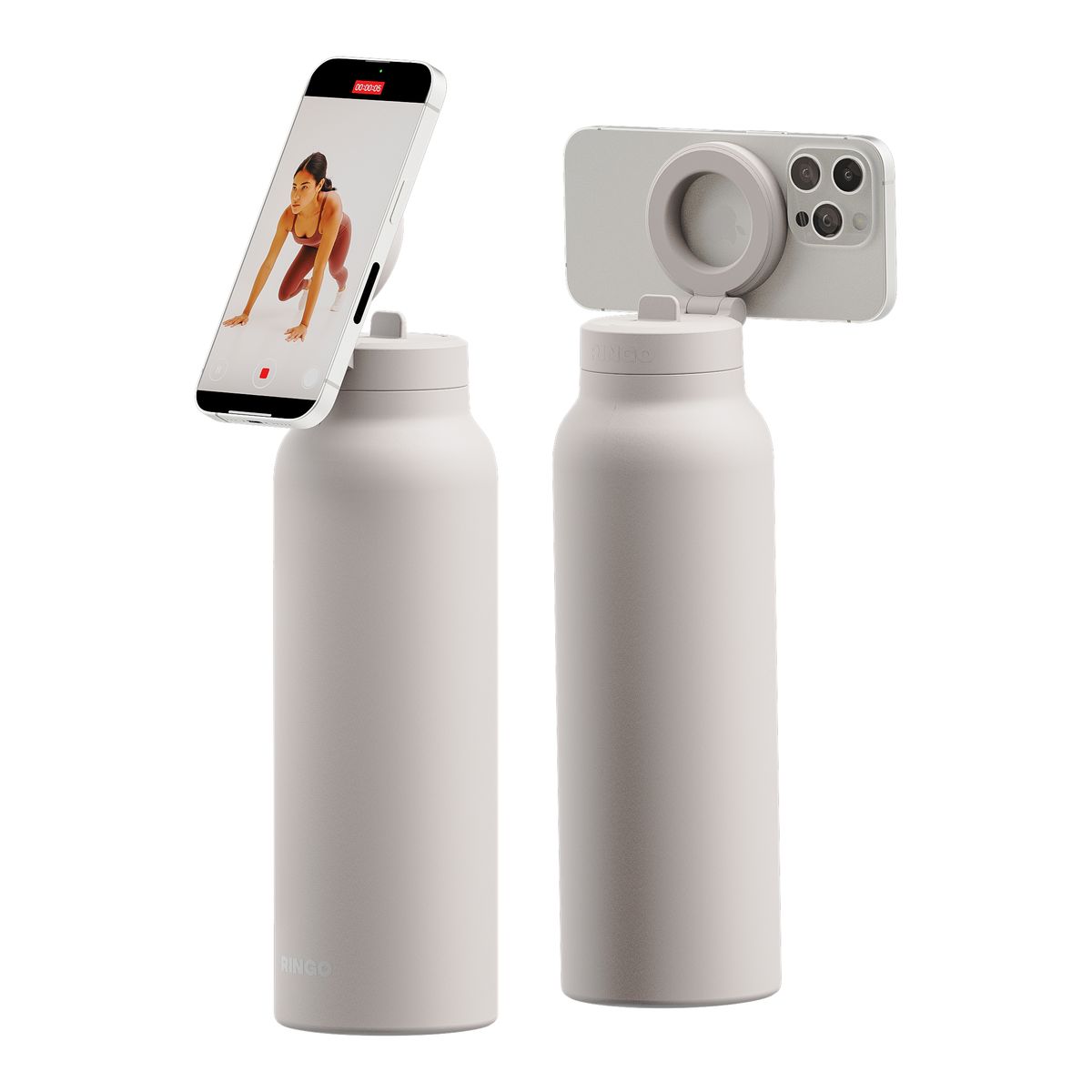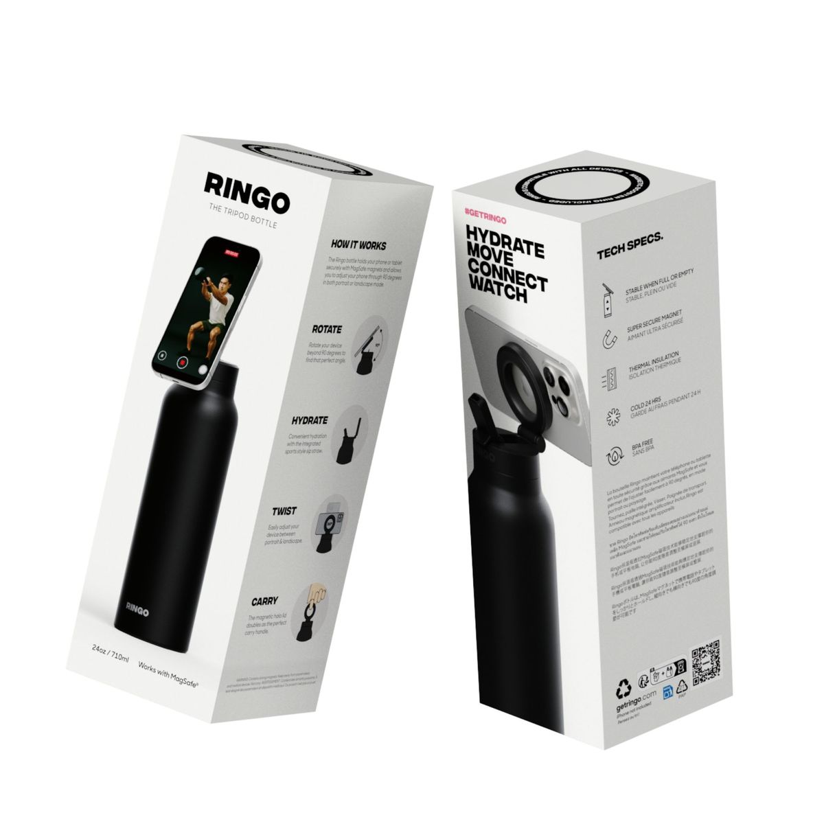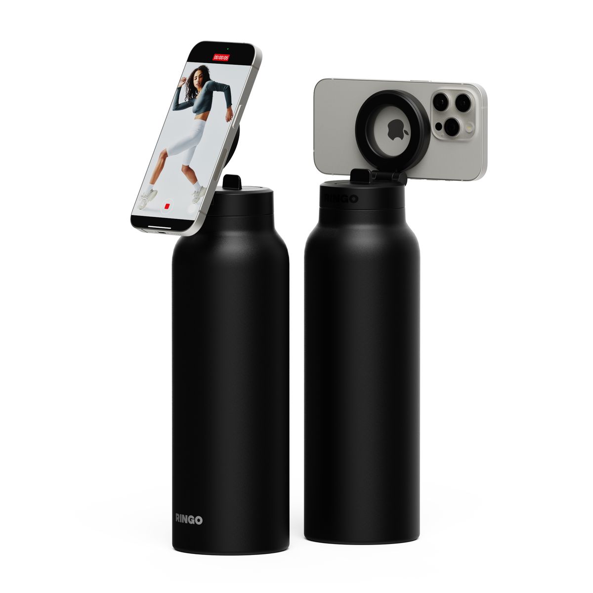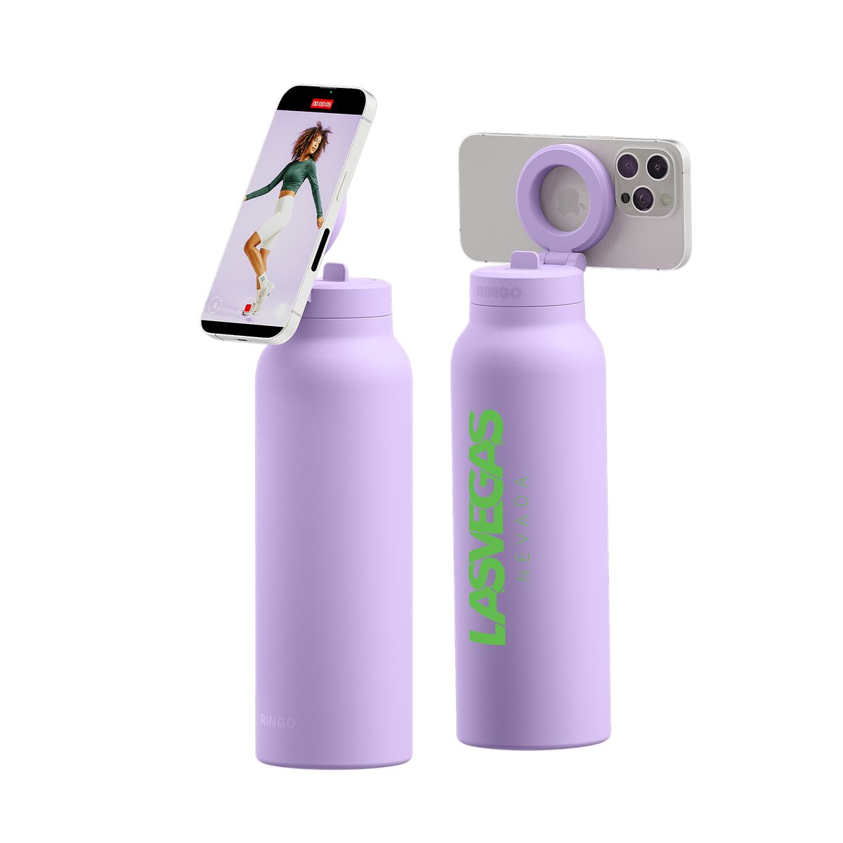 Stay refreshed and hands-free with the RINGO Pro Water Bottle. This 24 oz. bottle keeps drinks ice cold while the MagSafe-compatible magnetic ring securely mounts your phone at any angle. The flip-up straw lid is leakproof and easy to sip from, while the powder-coated finish resists scratches and scuffs. Durable, stable, and travel-ready—RINGO redefines hydration on the move.