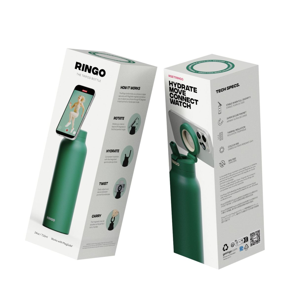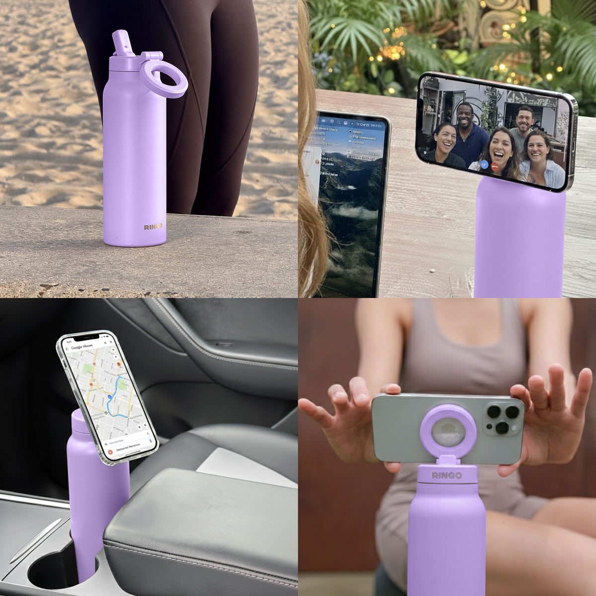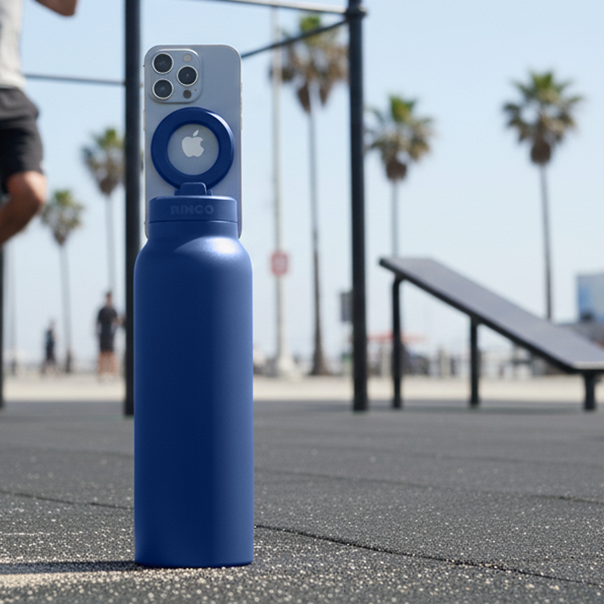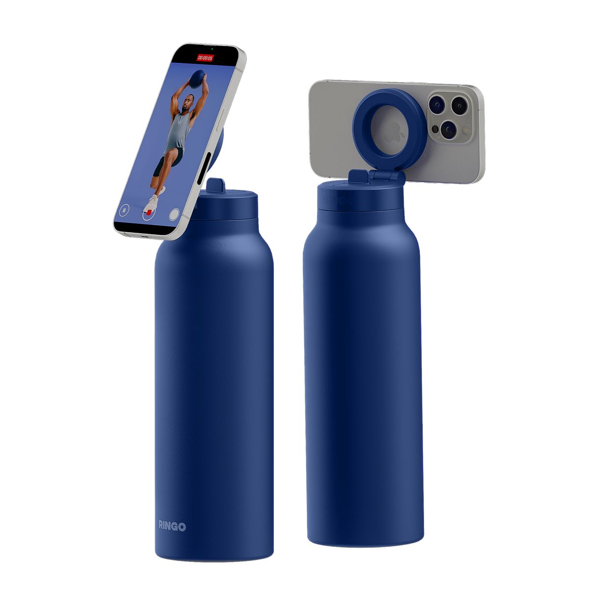 Stay refreshed and hands-free with the RINGO Pro Water Bottle. This 24 oz. bottle keeps drinks ice cold while the MagSafe-compatible magnetic ring securely mounts your phone at any angle. The flip-up straw lid is leakproof and easy to sip from, while the powder-coated finish resists scratches and scuffs. Durable, stable, and travel-ready—RINGO redefines hydration on the move.