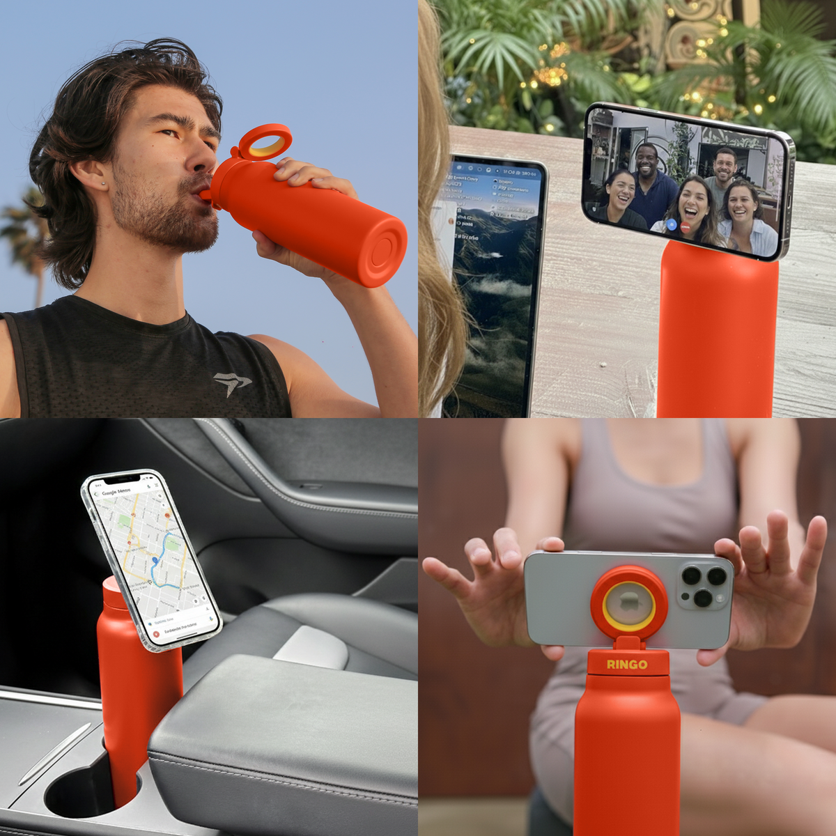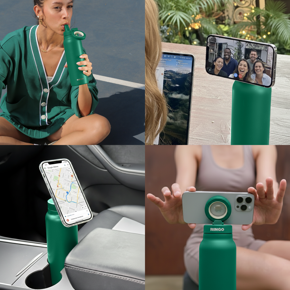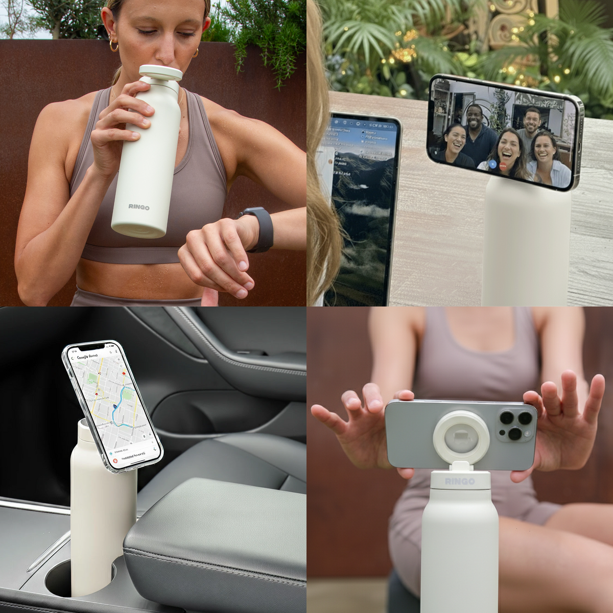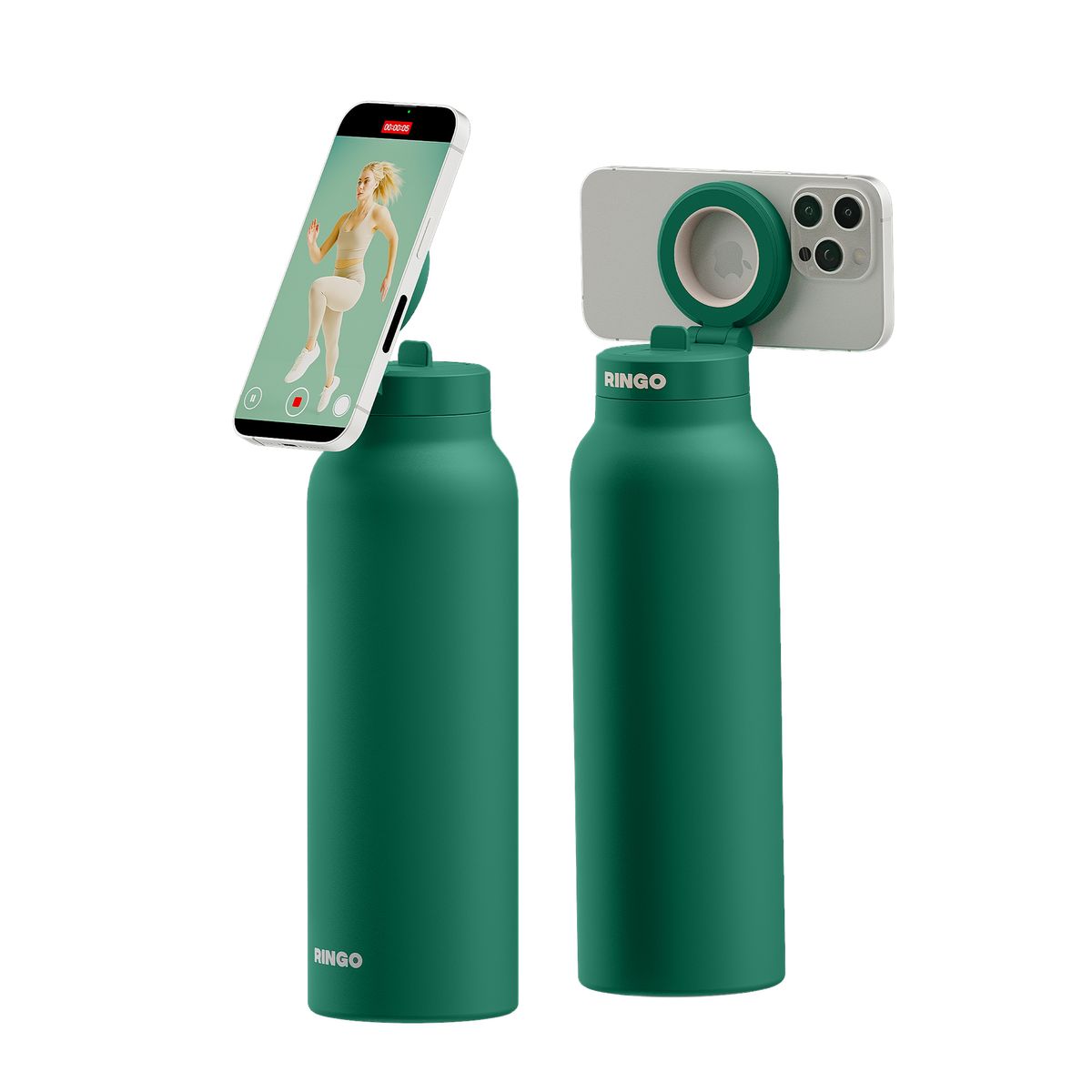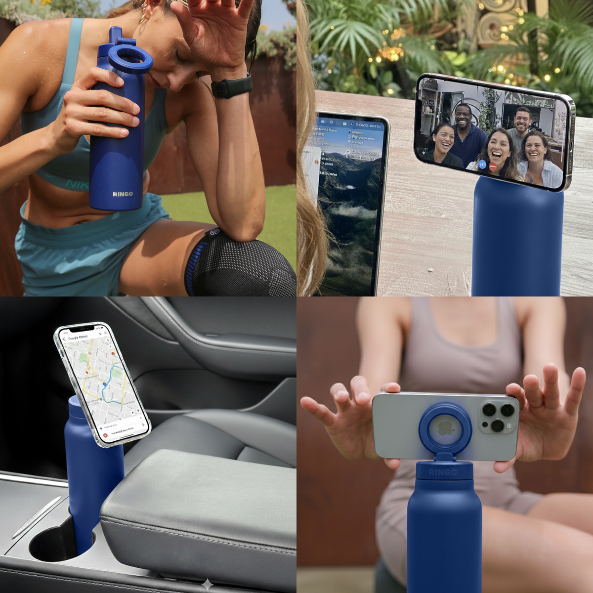 Stay refreshed and hands-free with the RINGO Pro Water Bottle. This 24 oz. bottle keeps drinks ice cold while the MagSafe-compatible magnetic ring securely mounts your phone at any angle. The flip-up straw lid is leakproof and easy to sip from, while the powder-coated finish resists scratches and scuffs. Durable, stable, and travel-ready—RINGO redefines hydration on the move.