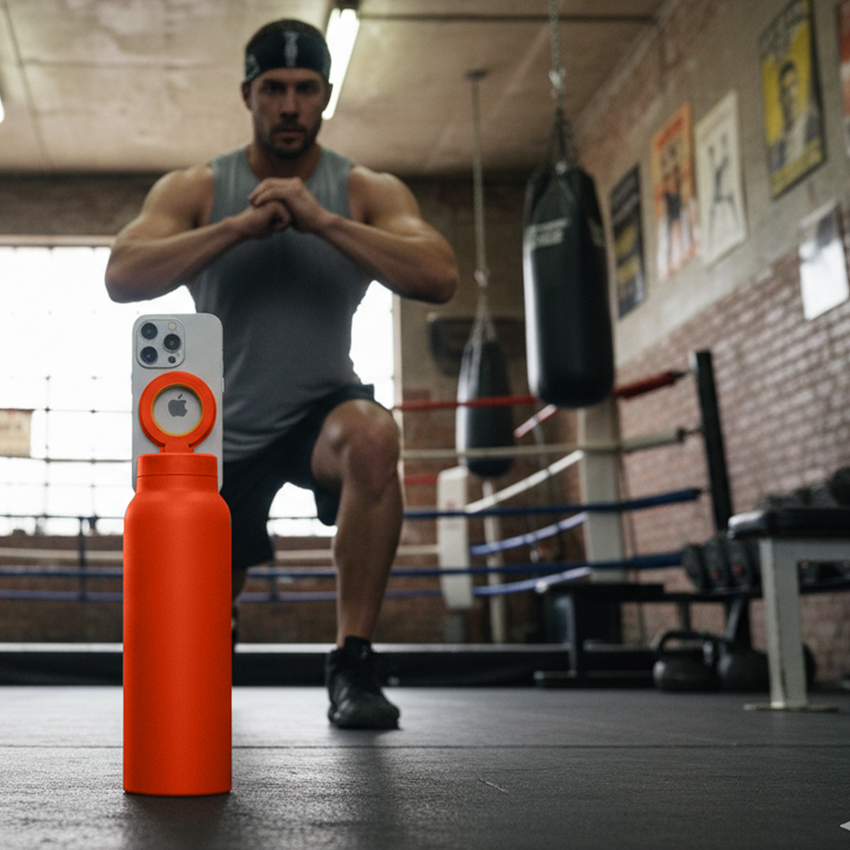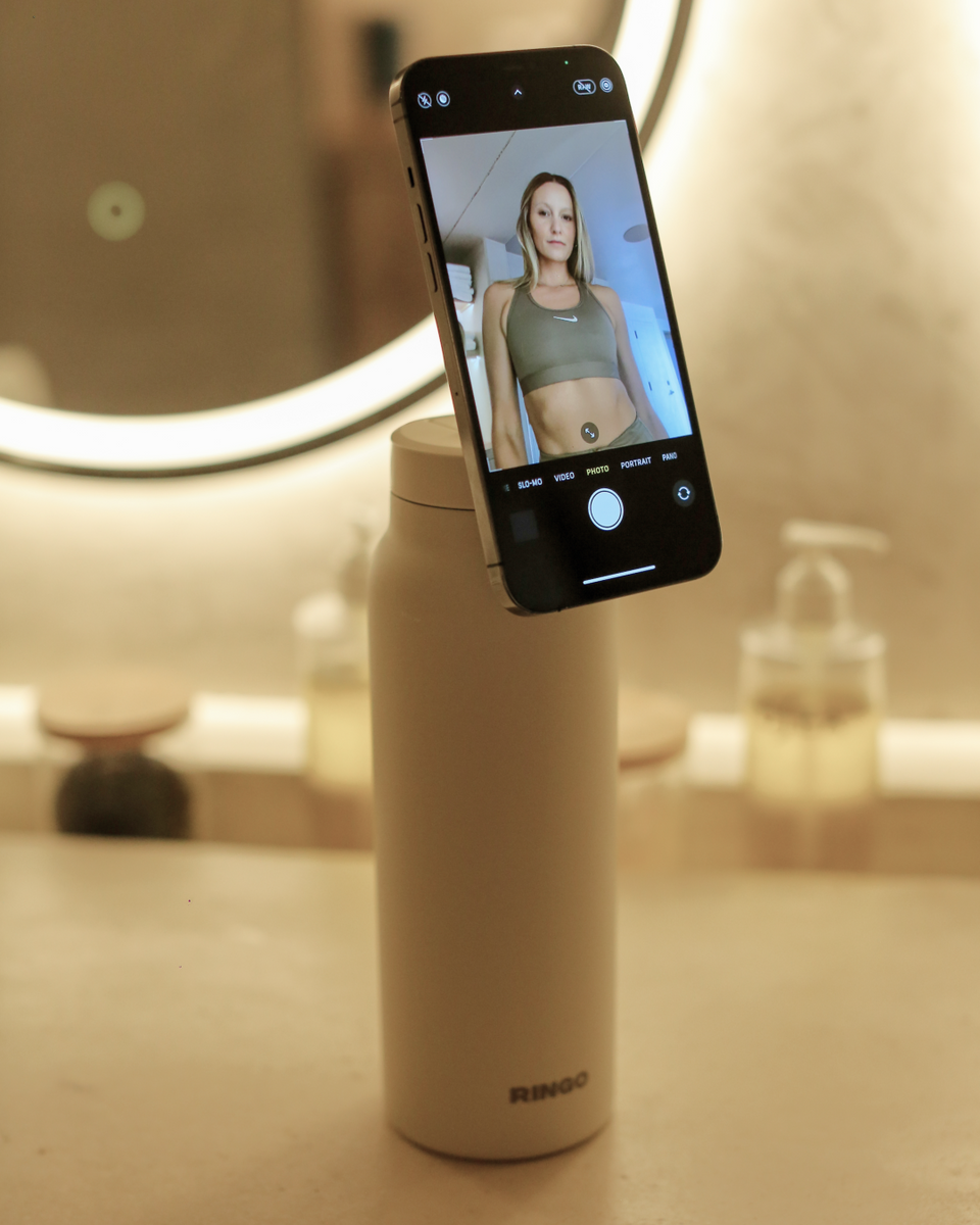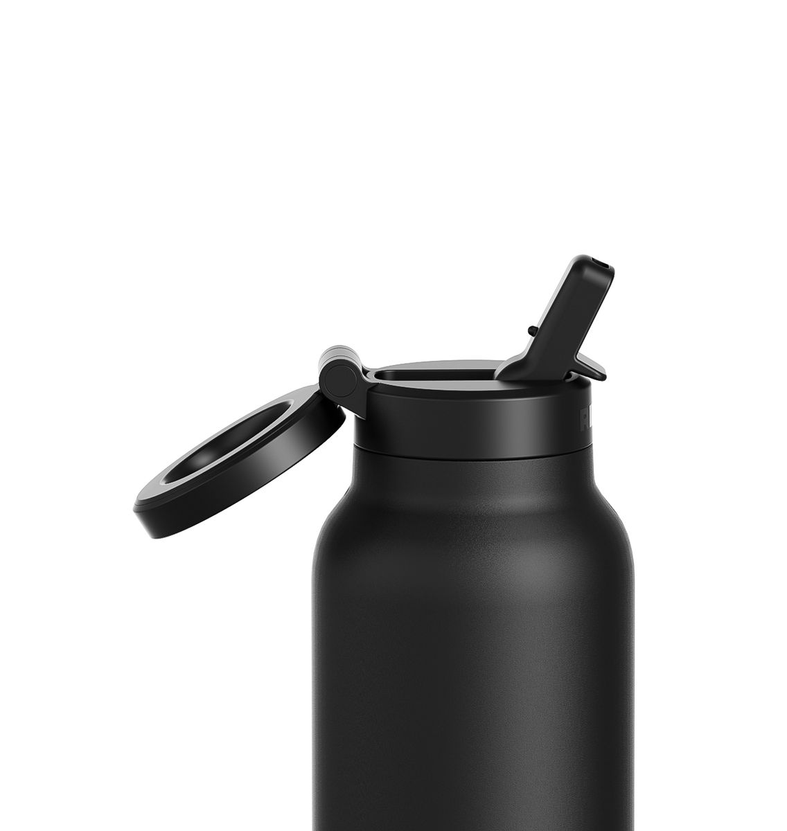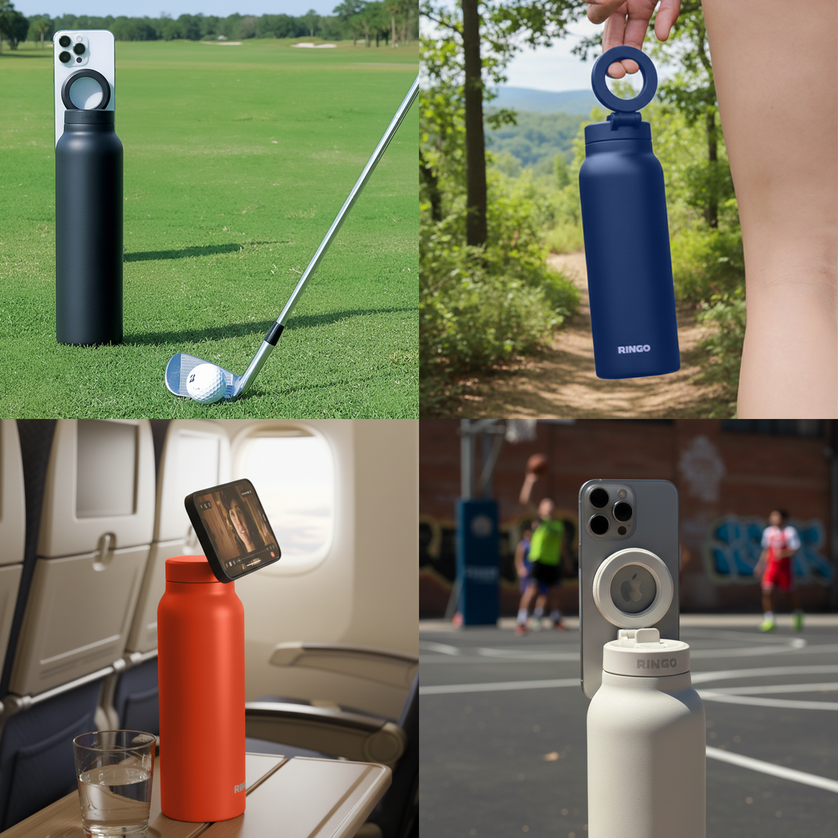 Stay refreshed and hands-free with the RINGO Pro Water Bottle. This 24 oz. bottle keeps drinks ice cold while the MagSafe-compatible magnetic ring securely mounts your phone at any angle. The flip-up straw lid is leakproof and easy to sip from, while the powder-coated finish resists scratches and scuffs. Durable, stable, and travel-ready—RINGO redefines hydration on the move.