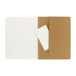 Take note of how to capture clients' hearts in the Moleskine (R) Cahier Ruled X-Large Journal! The lightweight notebook features a cardboard cover with visible stitching and a flap pocket inside the back cover. Great for day-to-day use, it has 120 sheets of ruled, acid-free paper and the last 16 sheets are perforated for convenience. This certified FSC notebook is packaged with a Moleskine ivory paper band and individually shrink wrapped.