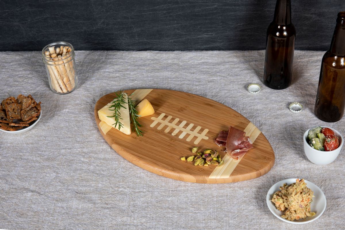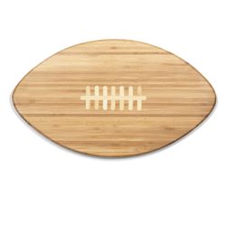 Show your love for football with Picnic Time's Touchdown! Cutting Board, a bamboo-constructed pigskin-inspired cheese board that doubles as a serving platter! Use the blank underside for chopping and the "laced" topside for serving. Whether you're tailgating or homegating, your friends and family will appreciate this cheese cutting board. First and ten!
