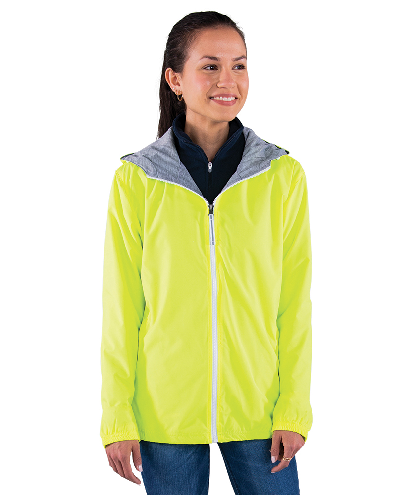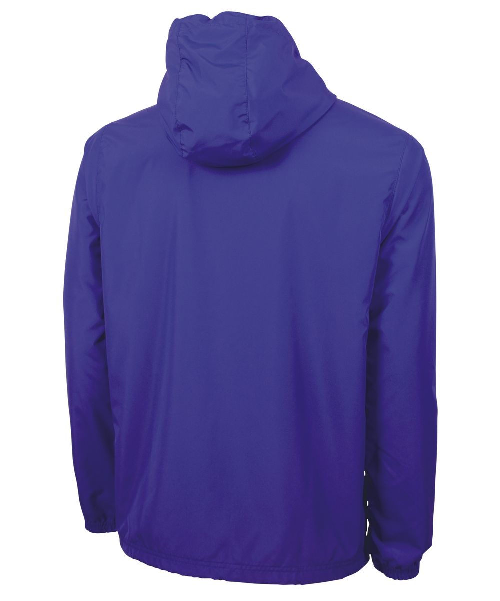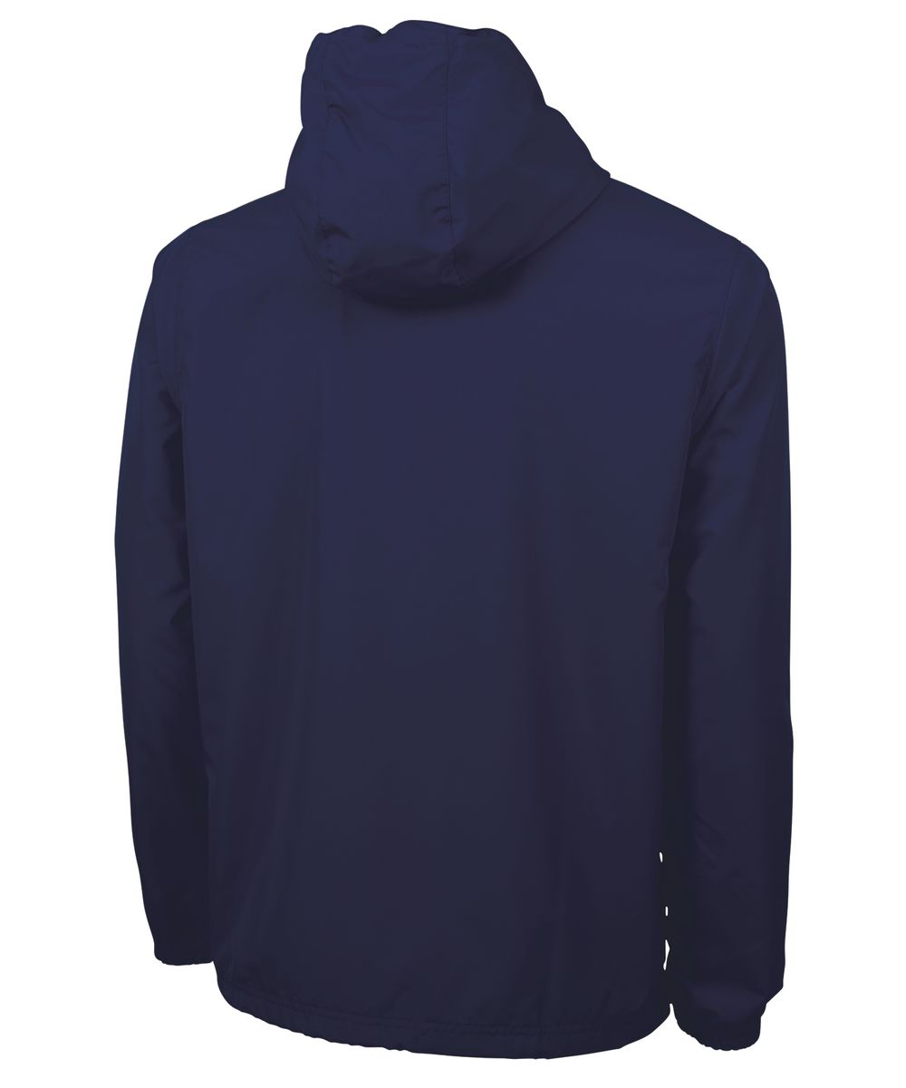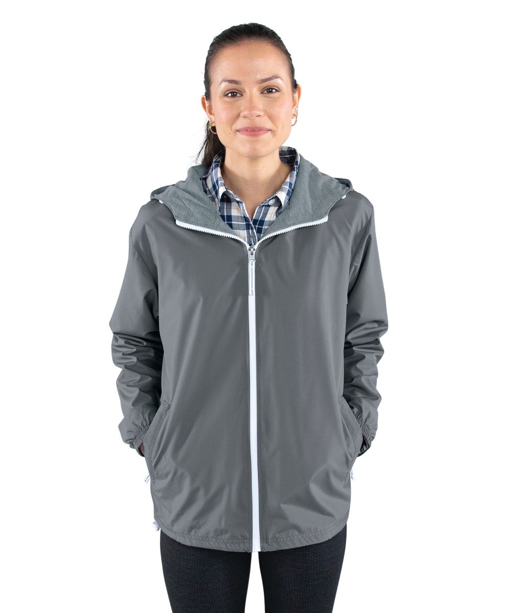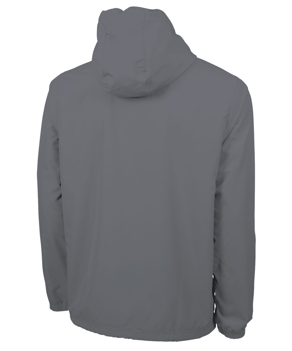 The Unisex Portsmouth Jacket is made from wind and water-resistant Softex Polyester with an oxford grey jersey lining. It features full-zip styling, reflective zipper pulls, covered side pockets, and elasticized cuffs. The hood and hem include an adjustable shockcord drawstring, and the ESA System (Embroidery Stow-Away) allows for easy decorating access. Unisex fit—women should size down 1-2 sizes for a more true-to-size fit.