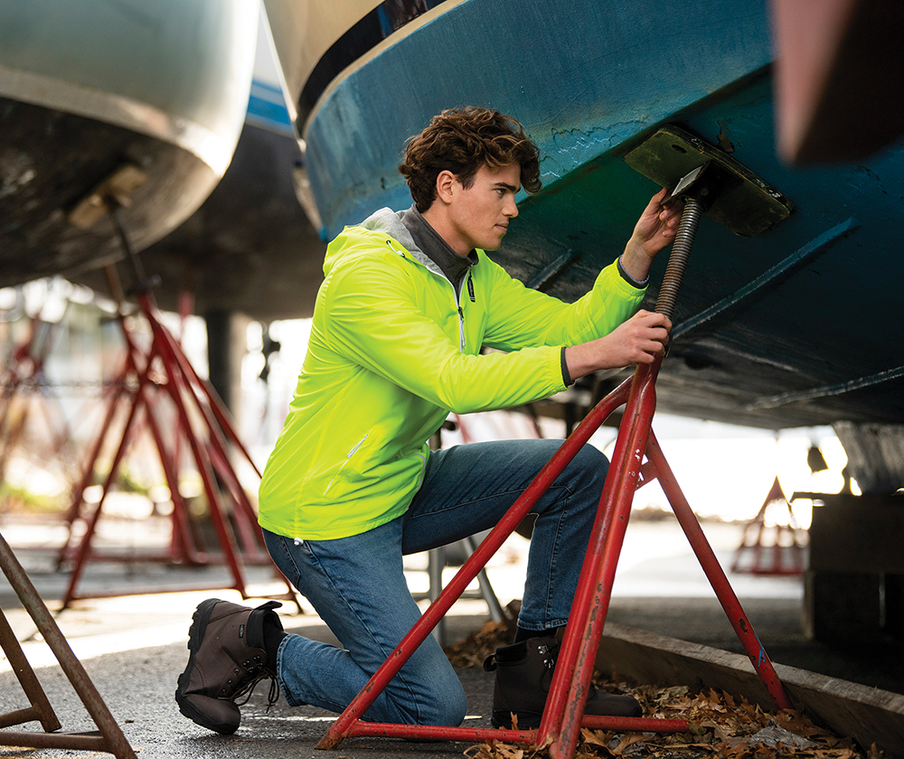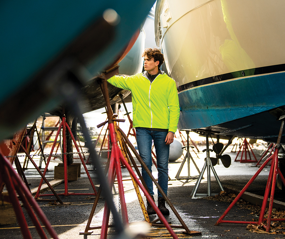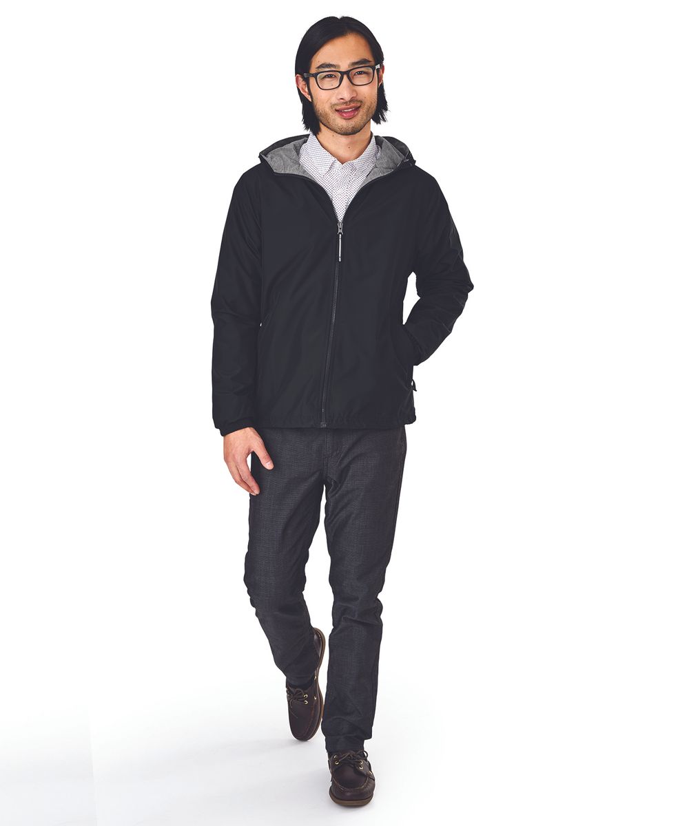 Highlights: Hooded full zip design with reflective, easy grab zipper pull detail