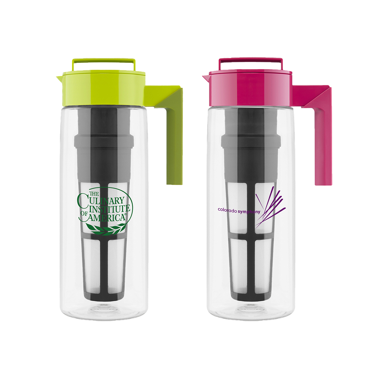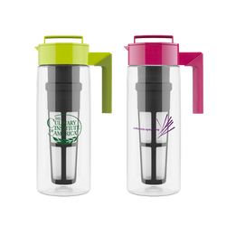 Takeya pitchers and beverage makers are functional and modern in design. Lids seal airtight, allowing for mixing, shaking and keeping beverages fresh while storing. The airtight seal allows pitchers to be stored upright or on their side. Best of all, Takeya pitchers are proudly Made in the USA!Brew, chill, serve and store iced tea in minutes with the Flash Chill Iced Tea Maker. The patented Flash Chill method features an airtight lid that locks in fresh aromas and flavors at their peak, delivering a handcrafted glass of iced tea at every pour. The large fine-mesh tea infuser is ideal for loose leaf tea, allowing each leaf to expand, unfurl and release full flavors.