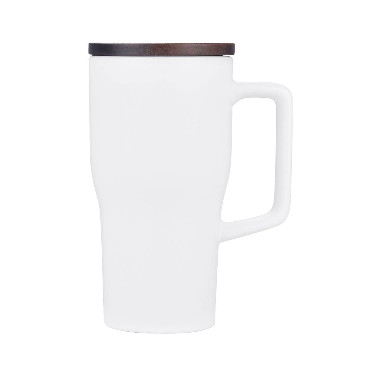 This 18oz ceramic mug combines classic ceramic texture with modern portability. It features a convenient carry handle, an easily decorated wooden lid, and a large area for customization. Made from stoneware, wood, and food-grade silicone with relevant safety certifications, it's a perfect blend of style and utility. Perfect for Coffee & tea shops, Corporate gifts & promotions, Artisan markets, Home & office use, Ceramic enthusiasts, Sustainable lifestyle brands.