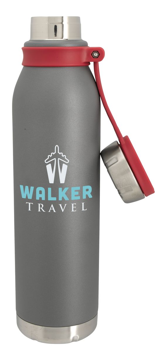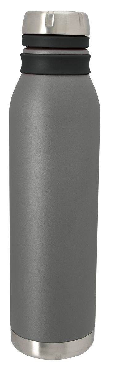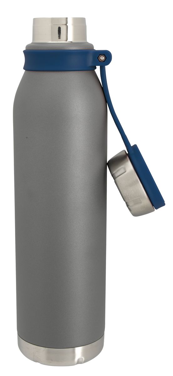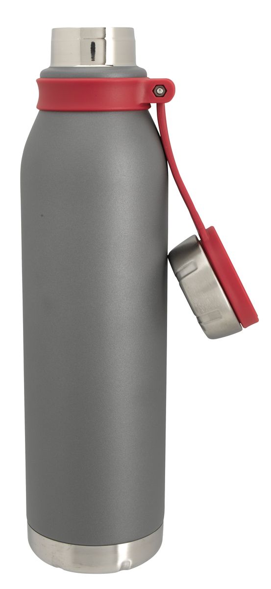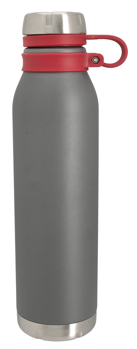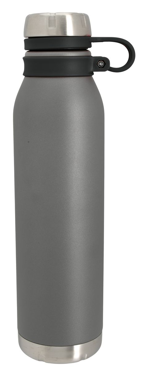 Never lose this matte gray bottle's lid. It is held on with a silicone hinge that doubles as a carrying loop and provides a pop of color. As functional as it is fashionable, this bottle features double-wall vacuum insulation to keep your drink hot or cold for hours.