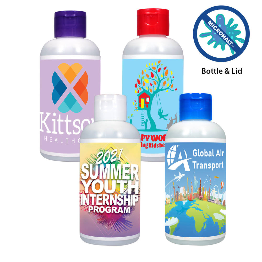 Claims Statement : Antimicrobial products each have an EPA registered antimicrobial agent incorporated into the plastic that protects the item itself by suppressing growth of bacteria. The EPA master label for the registered additive states that the antimicrobial agent is approved for inclusion into the polymers from which the products are manufactured for protection of those products themselves. The antimicrobial properties do not protect users or others against bacteria, viruses, germs or other disease organisms. For more information on U.S. regulations on antimicrobial agents and treated products, visit www.epa.gov. Pricing Includes : Printing using four-color process colors (cyan, magenta, yellow & black) on label on one side. Setup Charge : Add $50.00 (G) for new orders. No initial set-up charge on exact reorders. Imprint Area : 2.7225 in. W x 2.63 in. H Multi-location Imprint : Not available. Imprint Colors : Full Color Digital printing using four-color process colors (CMYK). On colored products, there may be a slight variation in the imprint. Multi-Color Imprint : Full color printing included in price. Print Requirements : Smallest Font Size: 6 pt, Line Thickness Minimum: 0.005", Reverse Line Space Minimum: 0.007" Copy Change: $55.00 (G) per change. Must be at least 1/2 of hte lowest quantity offered. Additional Artwork : The first 1/2 hour is FREE! Additional time will be charged $40.00 (G) per hour. Item Size : 4" tall Less Than Minimum : Not available. Proof : E-Proof $10.00 (G) each, Product Proof $50.00 (G) each (suggested when color matching is critical). Artwork charges are additional if required. Production Time : Standard production time is 7-10 working days. Fob : TN Packaging : Bulk packed. Shipping Weight : Approx. 45 lbs. per 200 pcs. Please Note : Shipping to Canada is restricted