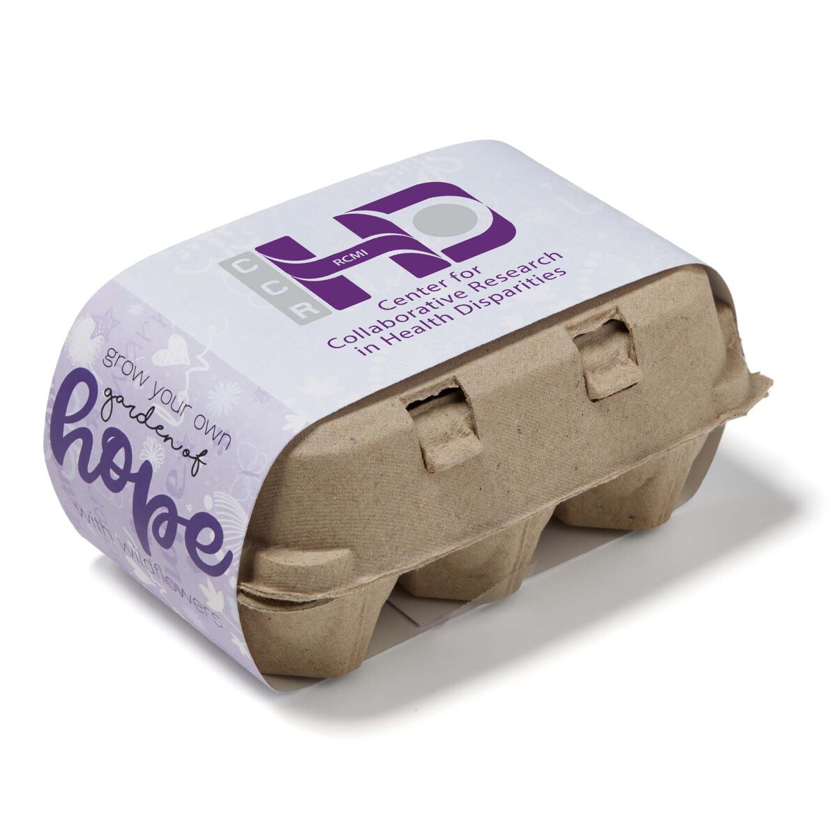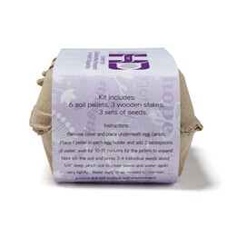 Grow-Your-Own Garden of Hope kit contains 3 packages of seeds and starter soil, plus wooden plant stakes, all inside a recycled 6 count egg carton! Write on the wooden stakes, to identify the seed type in each compartment!