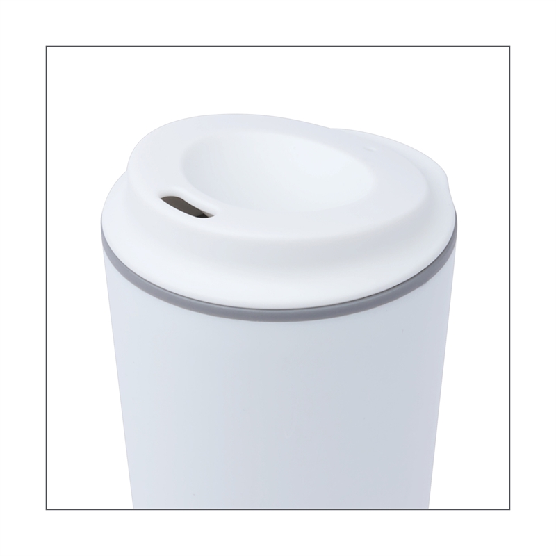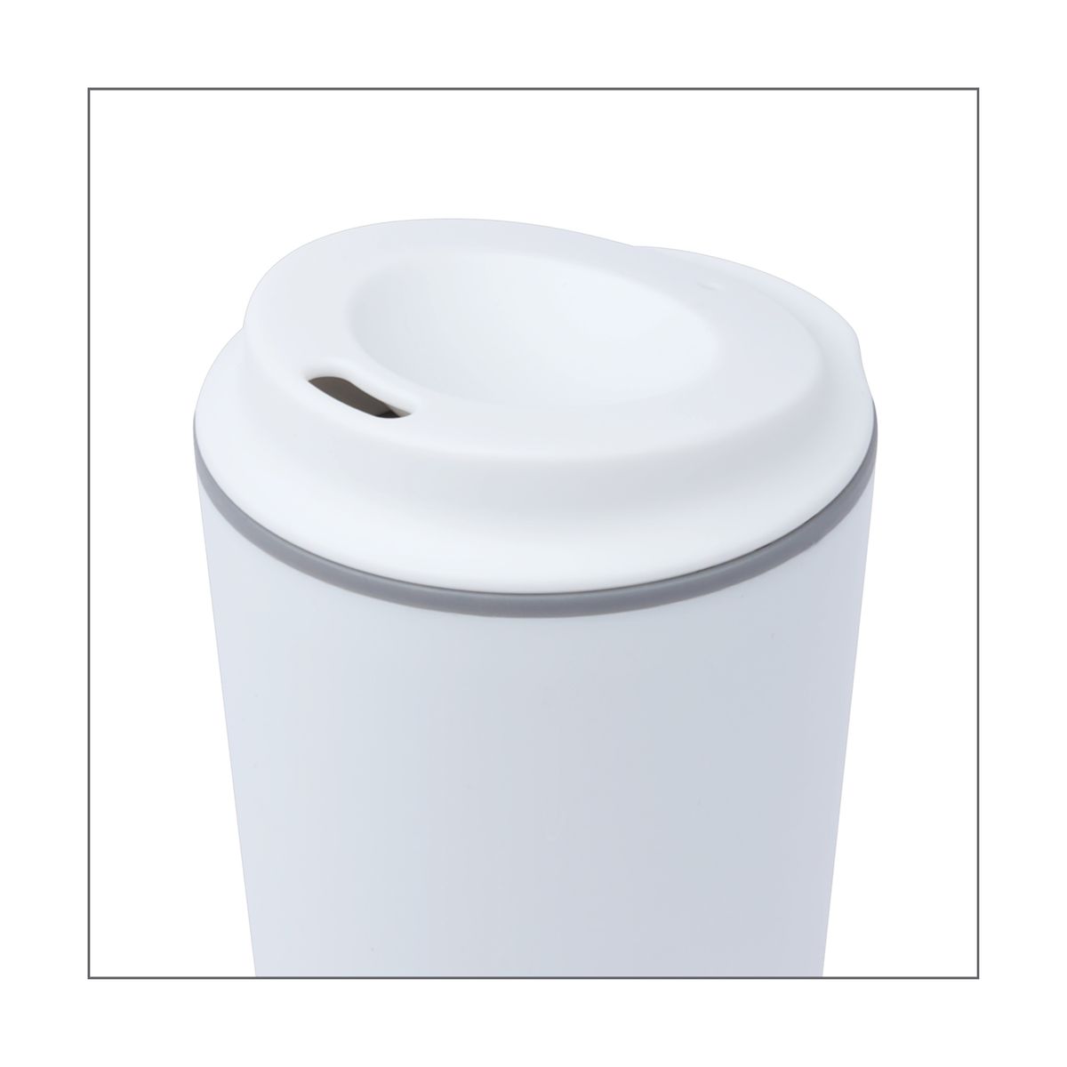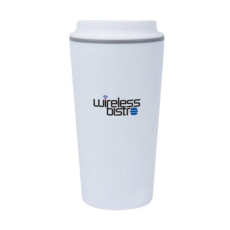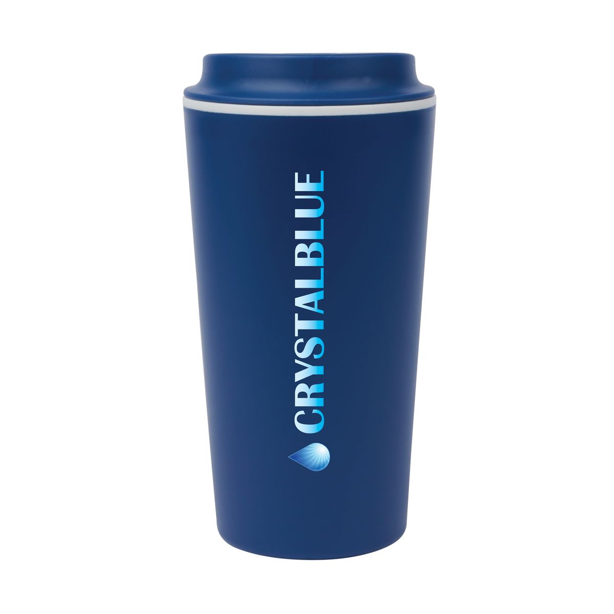 The Kenzie 16 oz. Coffee Tumbler is designed for everyday convenience with an eco-conscious touch. Featuring durable double-wall construction with 100% recycled polypropylene inner and outer walls, it helps maintain beverage temperature while supporting sustainability. The screw-top sipper lid provides secure, spill-resistant sipping on the go, and its slim profile fits most car cup holders for easy travel. Perfect for daily commutes, errands, and workdays, this lightweight tumbler delivers practical performance you can feel good about.