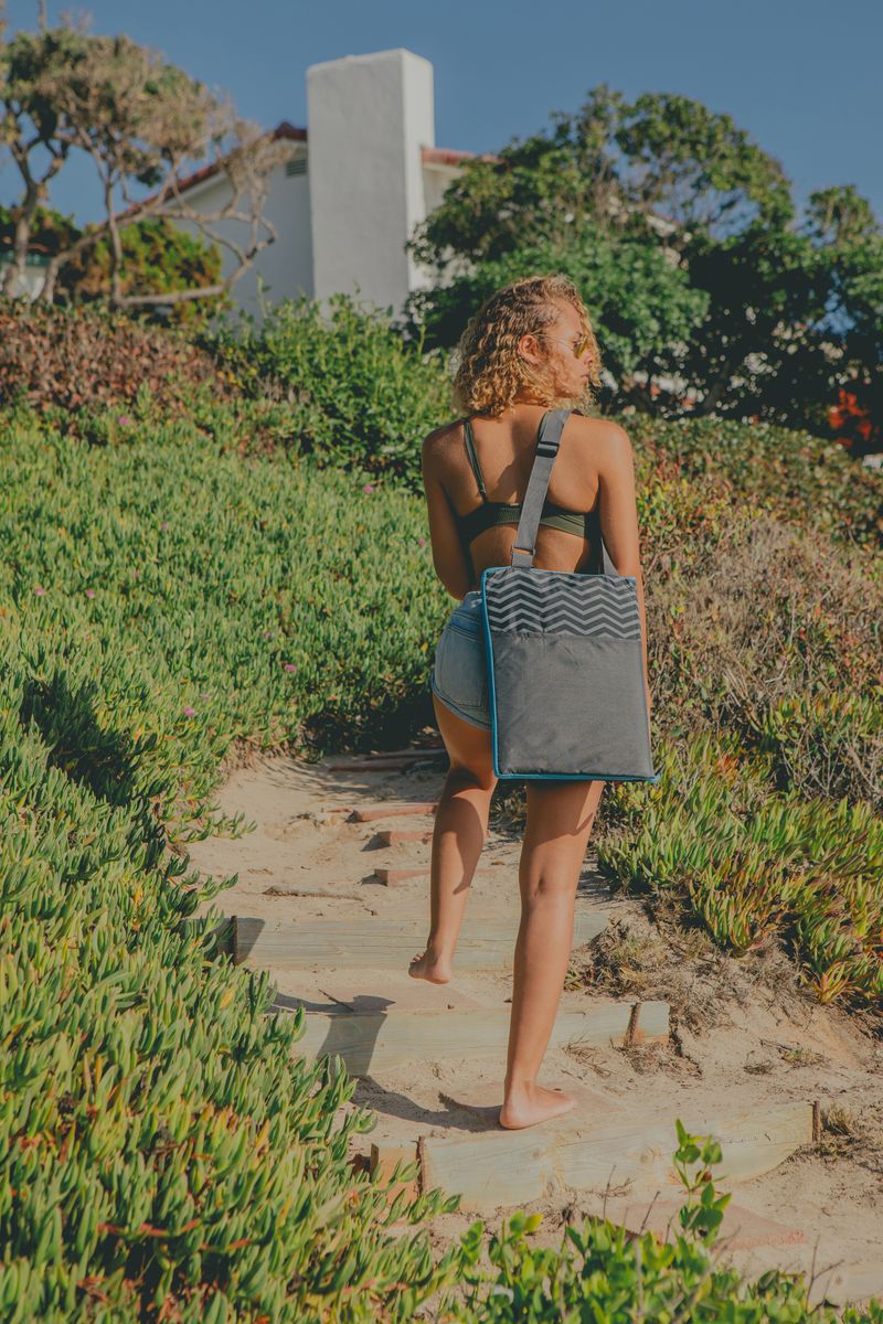 Grass stains and spilled drinks don't stand a chance against the Vista Outdoor Picnic Blanket & Tote, a durable portable outdoor blanket with a multi-colored topside and solid-colored underside. This handy camping blanket packs compactly into a carry tote with an adjustable carry strap and extra-large pocket. And don't worry about getting this beach blanket tote dirty, it's machine washer & dryer safe!