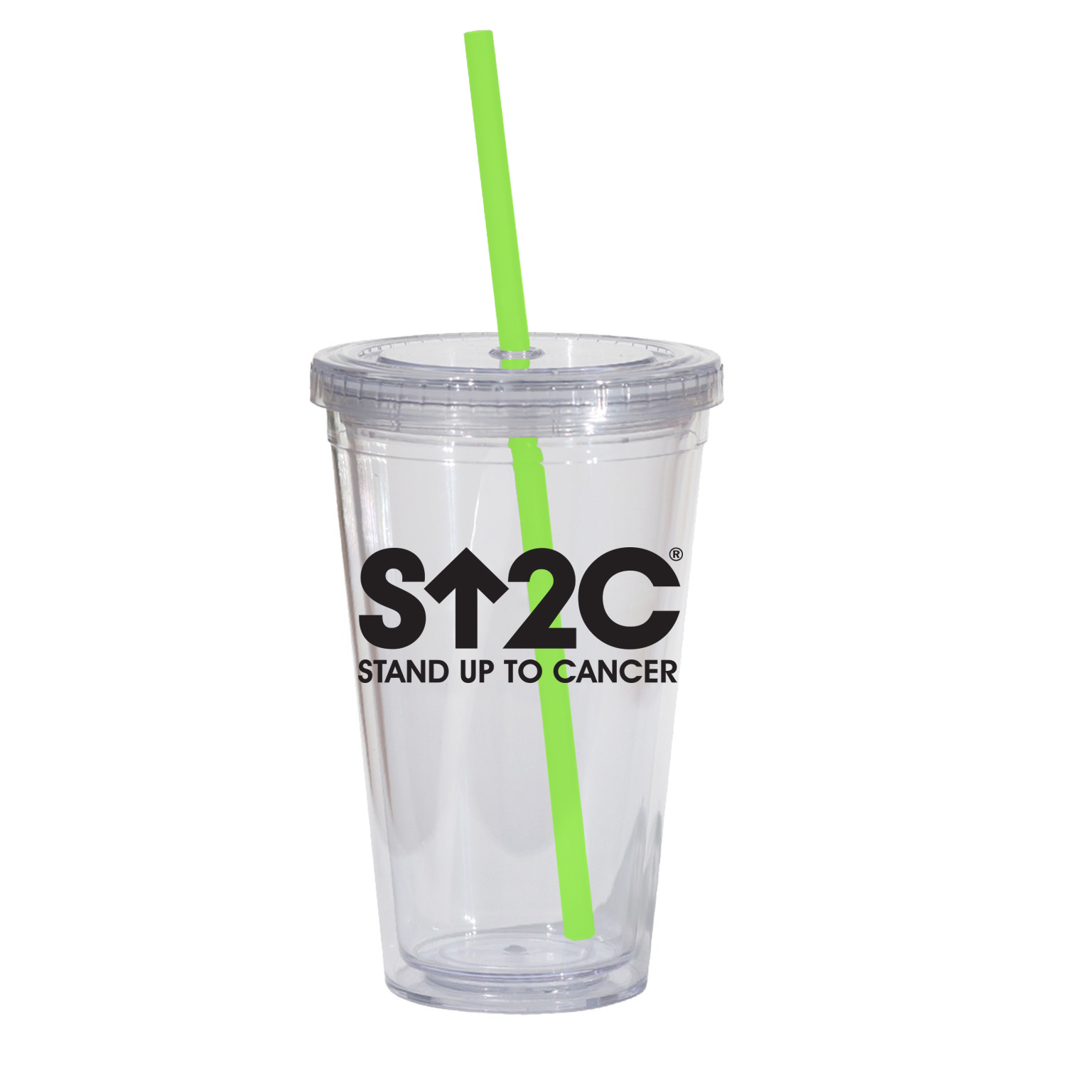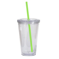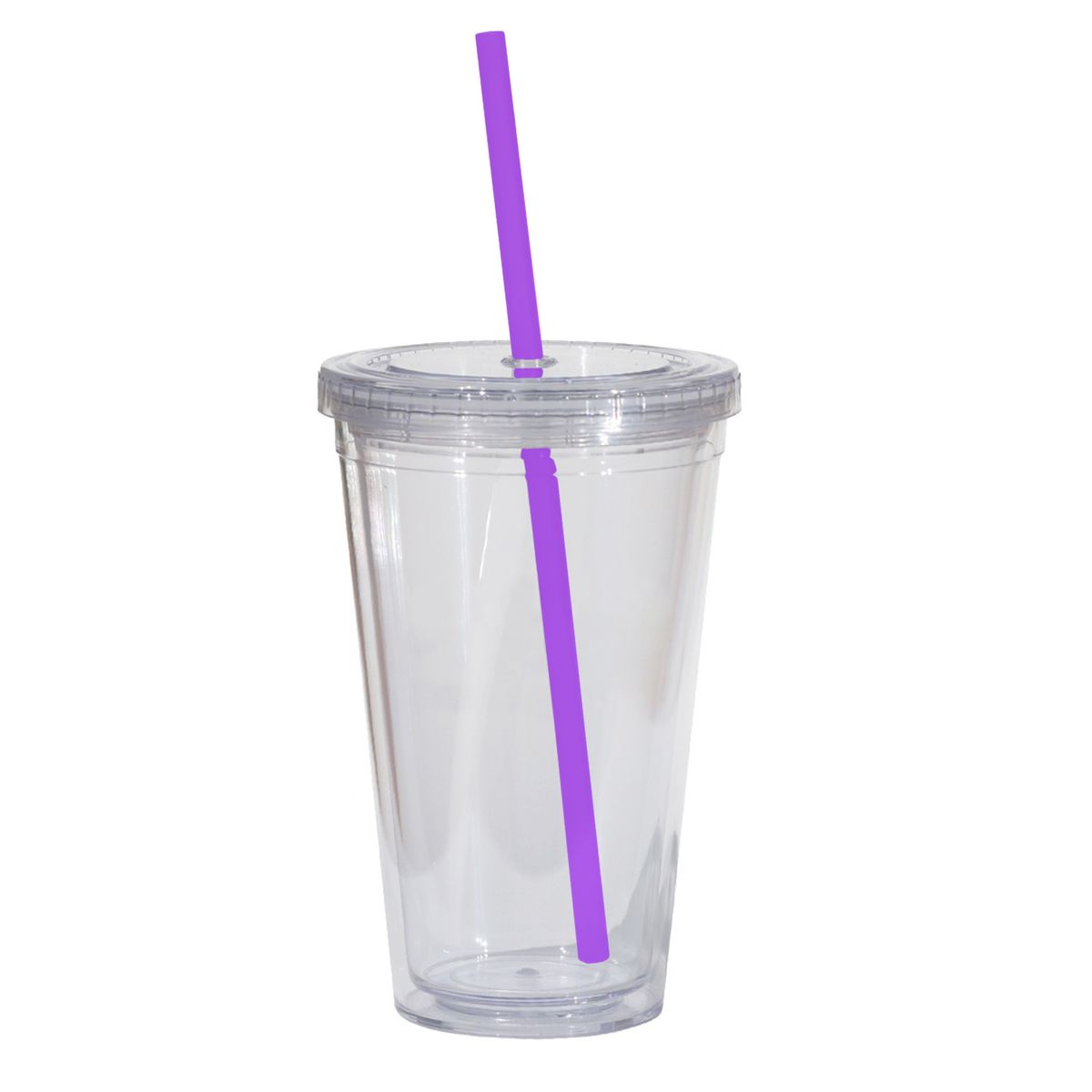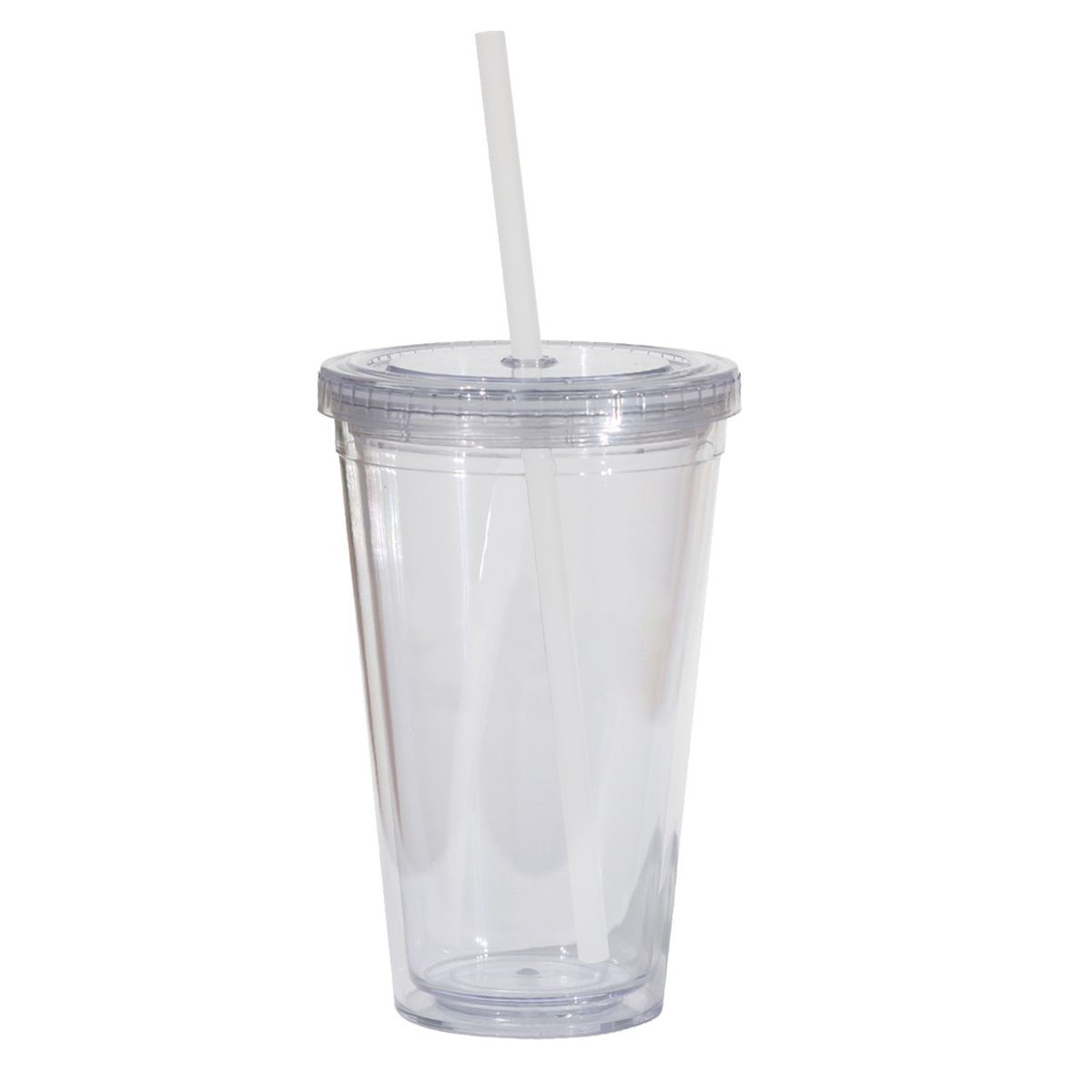 Glacier 16 oz. Double Wall Translucent Acrylic Tumbler. BPA free. Threaded lid with matching color straw and molded grommet keeps straw in lid. Available in 5 colors with bendable plastic straw. Tapered bottom fits most drink holders. Same color, second side or wrap imprint at no additional charge. Size: 6 1/4 H x 3 3/4 Upper Diameter, 2 1/2 Lower Diameter.