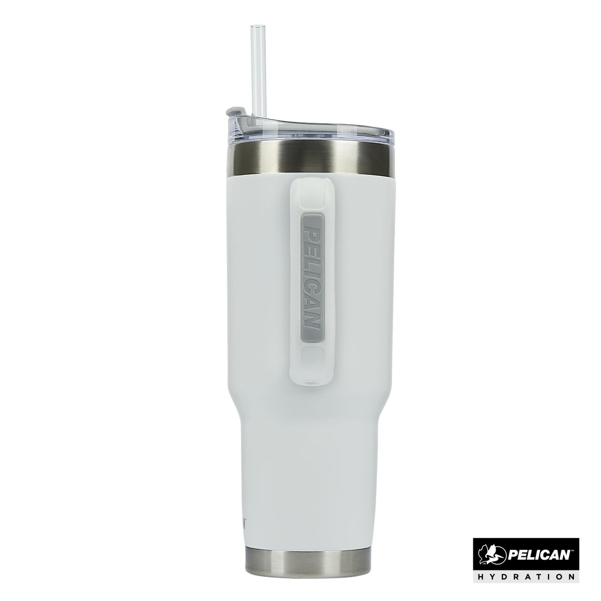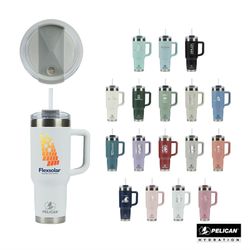 A perfect companion to keep you hydrated all day, the 40 oz. Pelican Porter™ Travel Tumbler is ready for all of life’s adventures. With sustainability top of mind, it’s constructed from 90% recycled pro-grade 18/8 stainless steel, and its double wall vacuum insulated construction with copper lining keeps hot liquids hot for 9 hours and cold liquids cold for 16 hours. This mug also features a splash-resistant Tritan™ lid with rotating closure, a sipper hole for hot liquids and a Tritan™ drinking straw. Its double-injected ergonomic handle provides a soft touch grip for carrying and drinking and the high-quality powder coat finish is scratch-resistant. The tapered base fits most cup holders from the car to the camping chair to the stroller, making the Pelican Porter™ your go-to when on-the-go. FDA compliant and BPA Free. U.S. Patent No D1065938.
