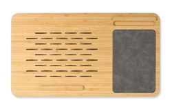 Tackle your to-do list anywhere with the Auden Bamboo Lap Desk. Its vented bamboo tray fits a 15? laptop, with a built-in phone dock, vegan leather mouse pad, and secure device ledge. A cushioned base adds comfort, and the renewable bamboo finish brings natural style.